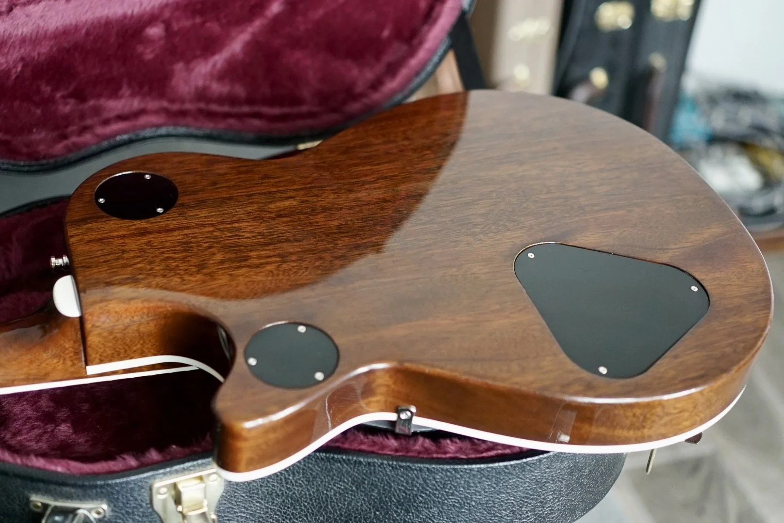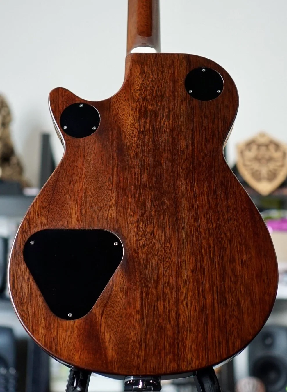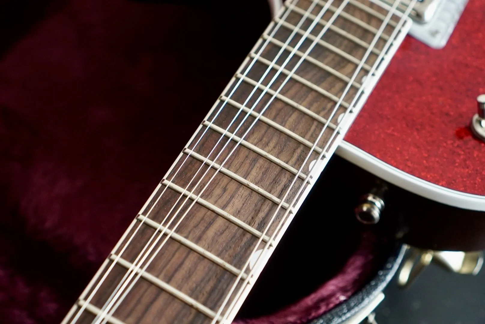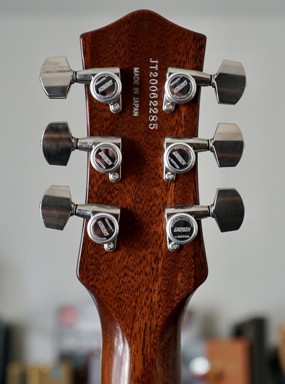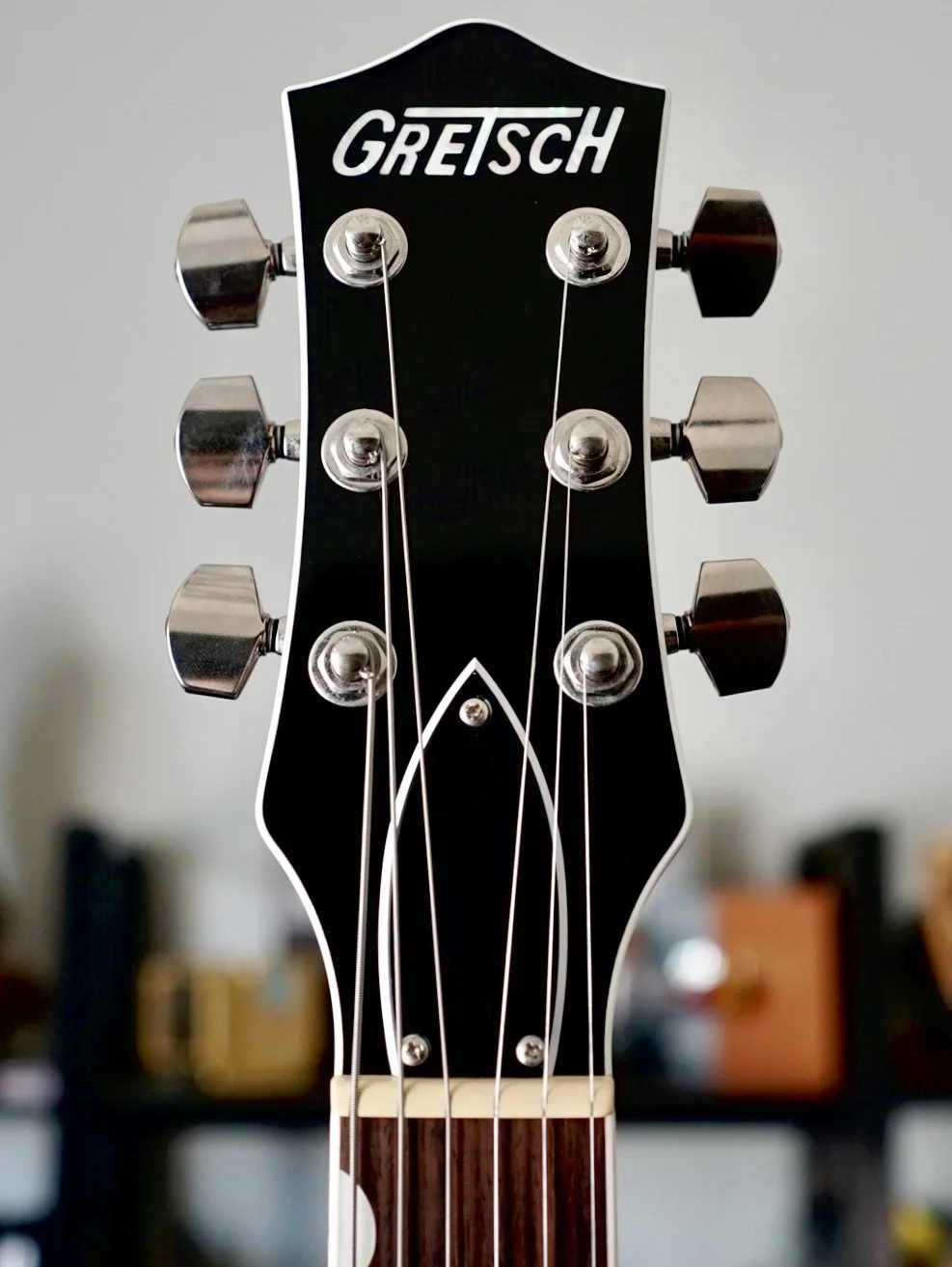 The tone is stellar. The Stock Gretsch Filter’Trons provide crispy clean highs and warm lows. Electronics are smooth and quiet.