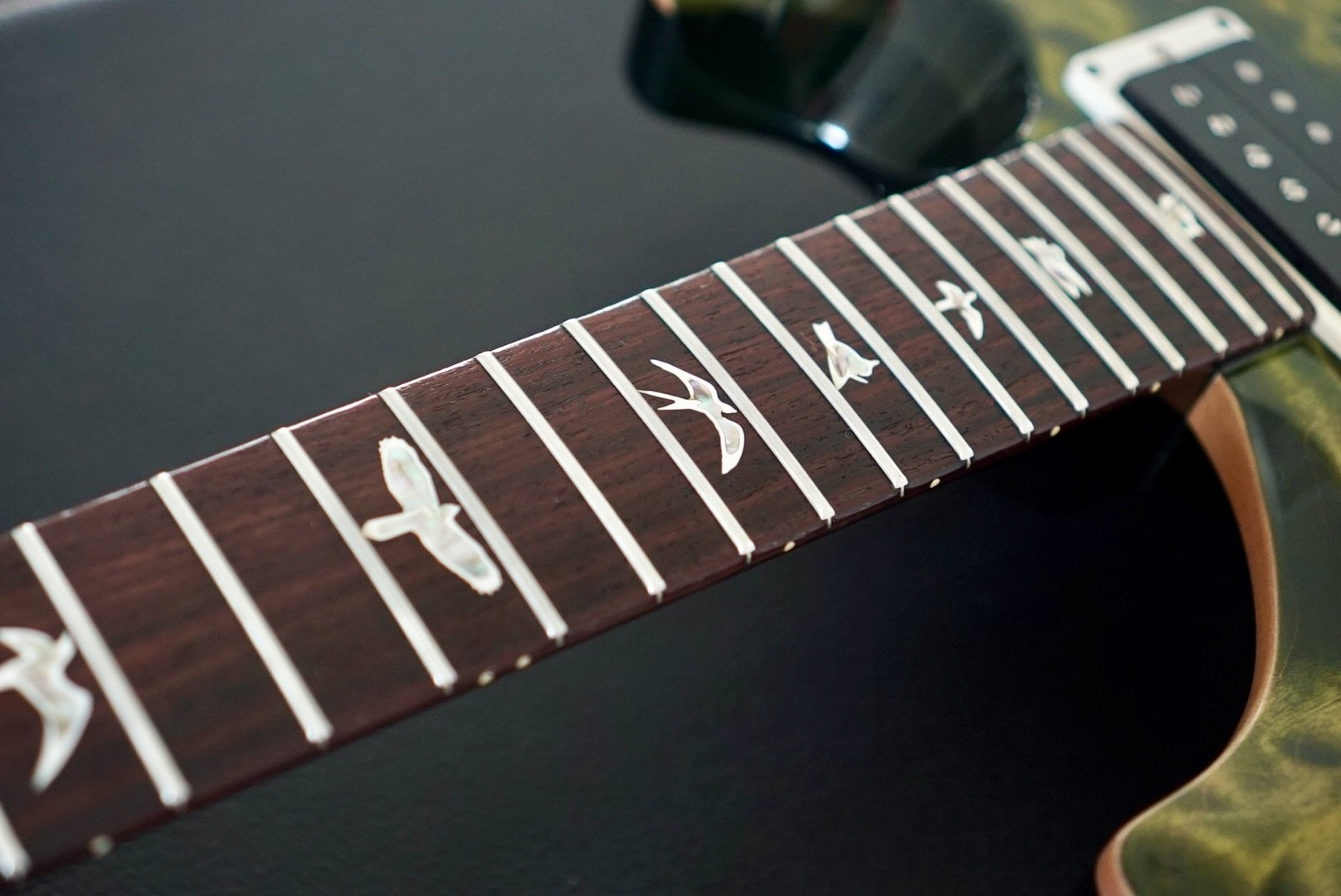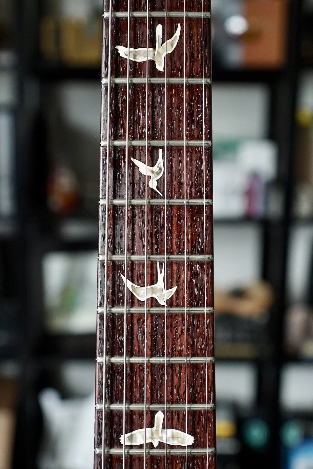 Ridiculously cool Rosewood Fretboard with just an insane active graining only taken to the next level with those Bird Inlays!!