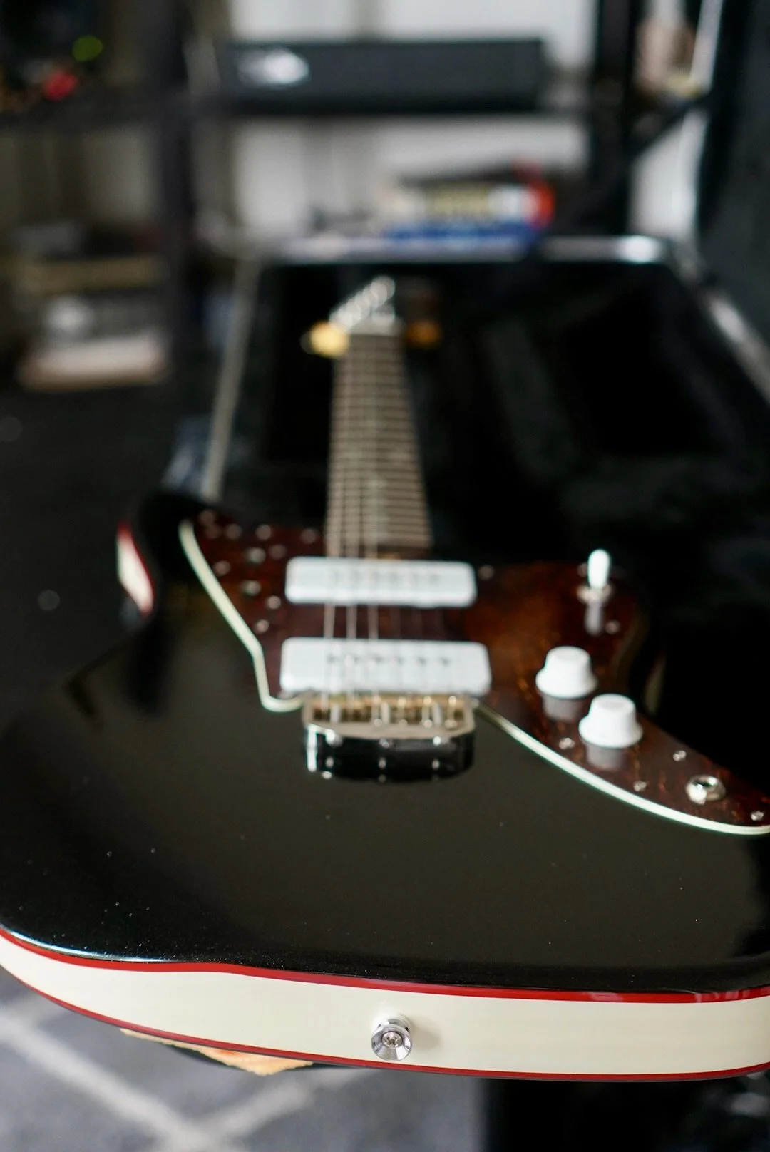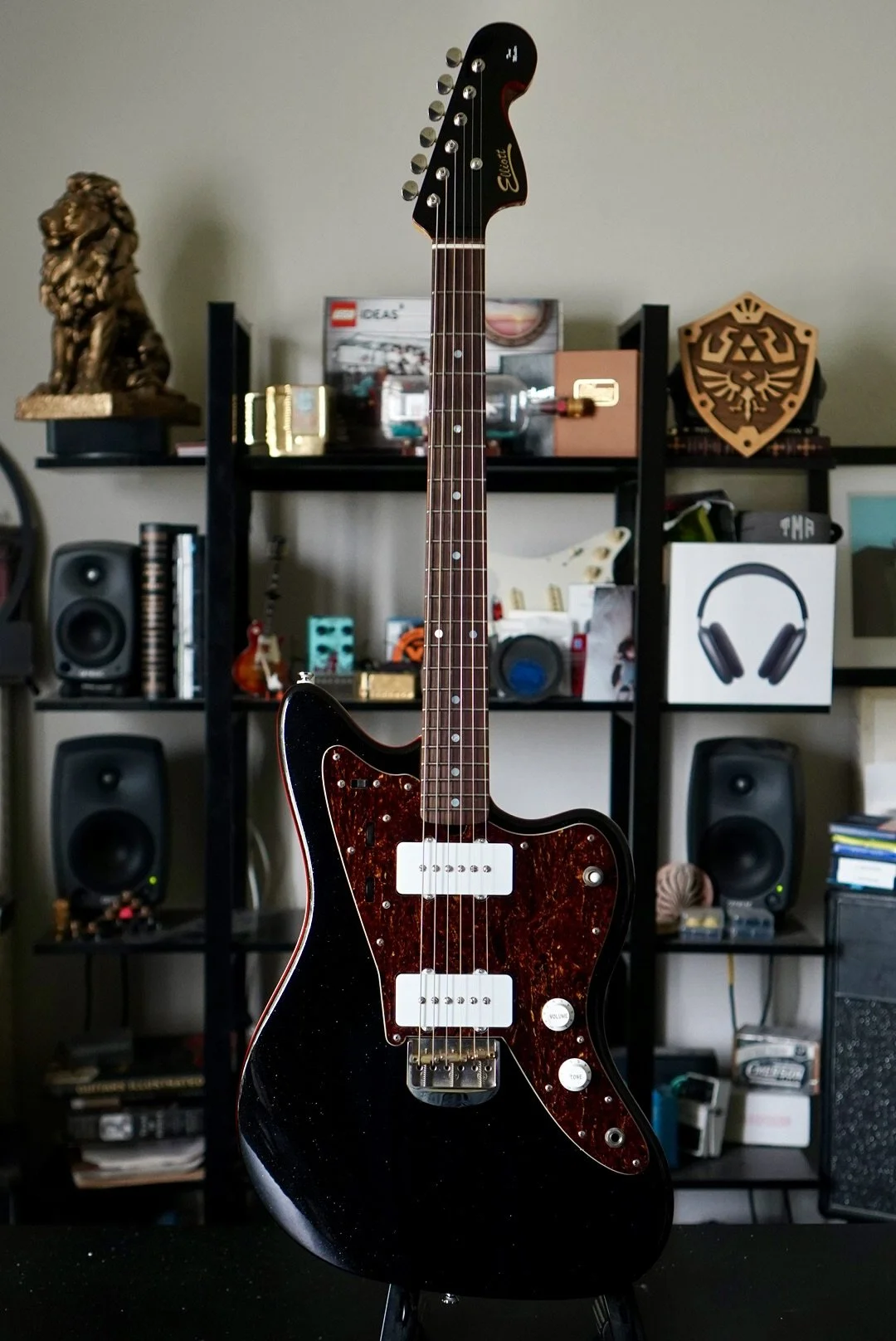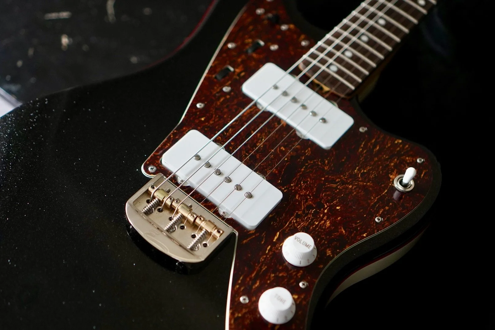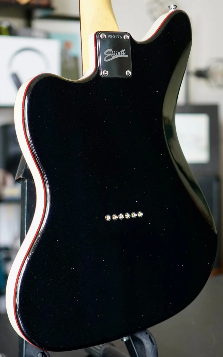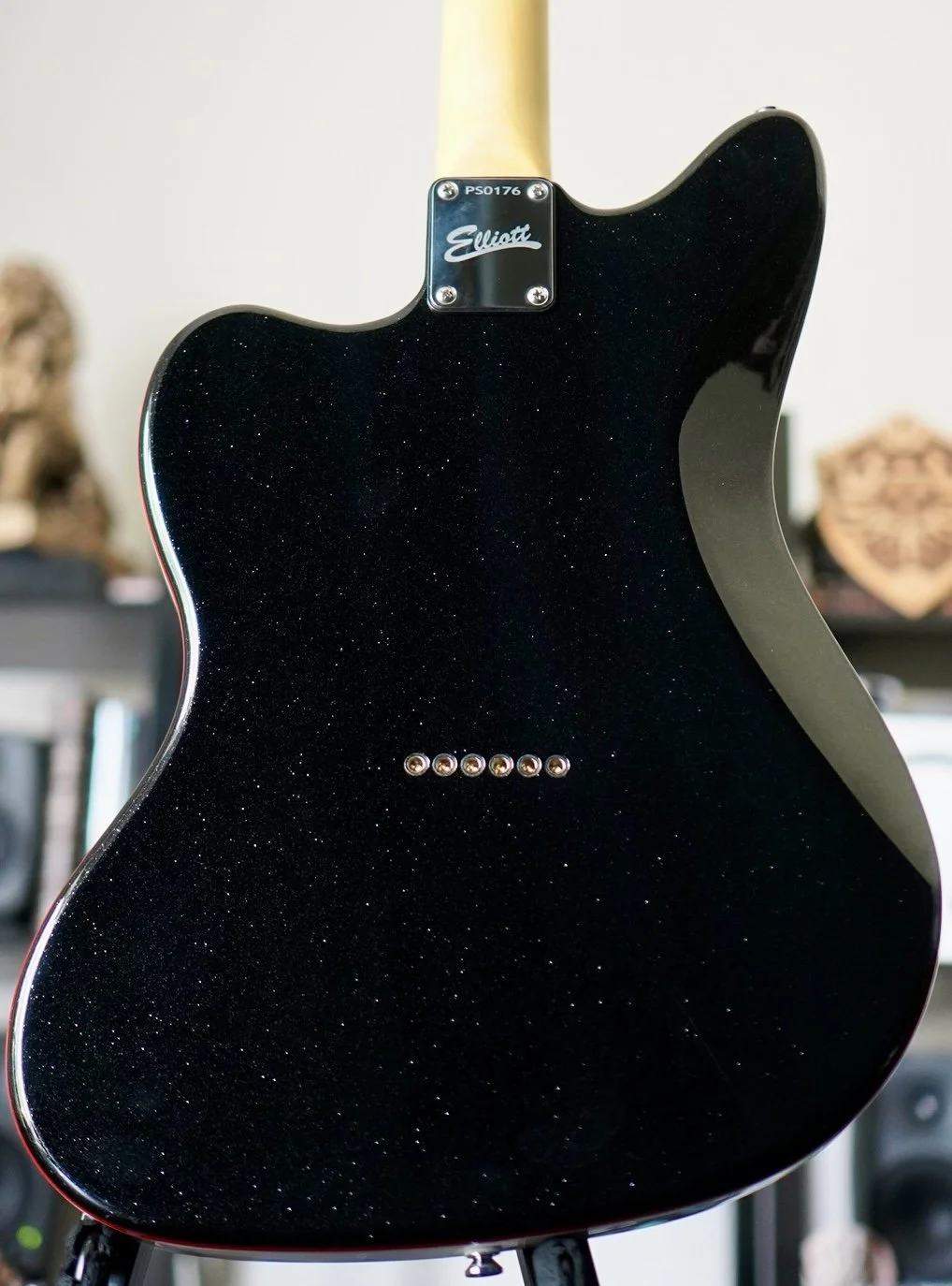 Ridiculous Offset vibes for days! This Jazzmaster style guitar is simply amazing! It just doesn’t get any better than Elliott! The Black Sparkle Finish is majestic in person!
