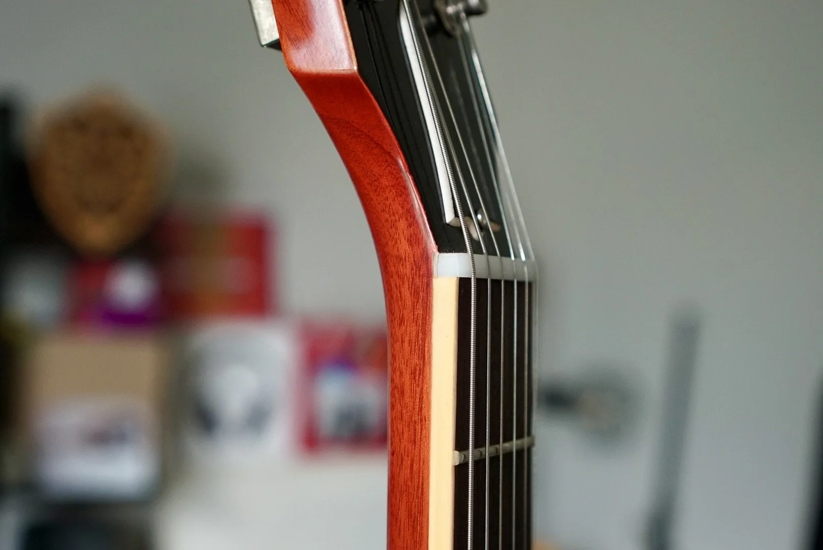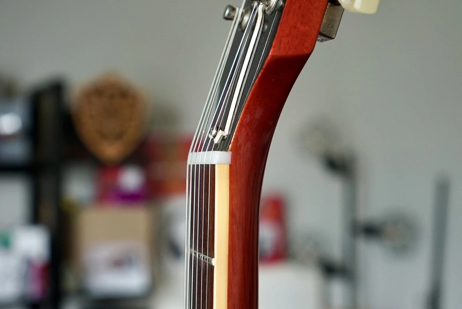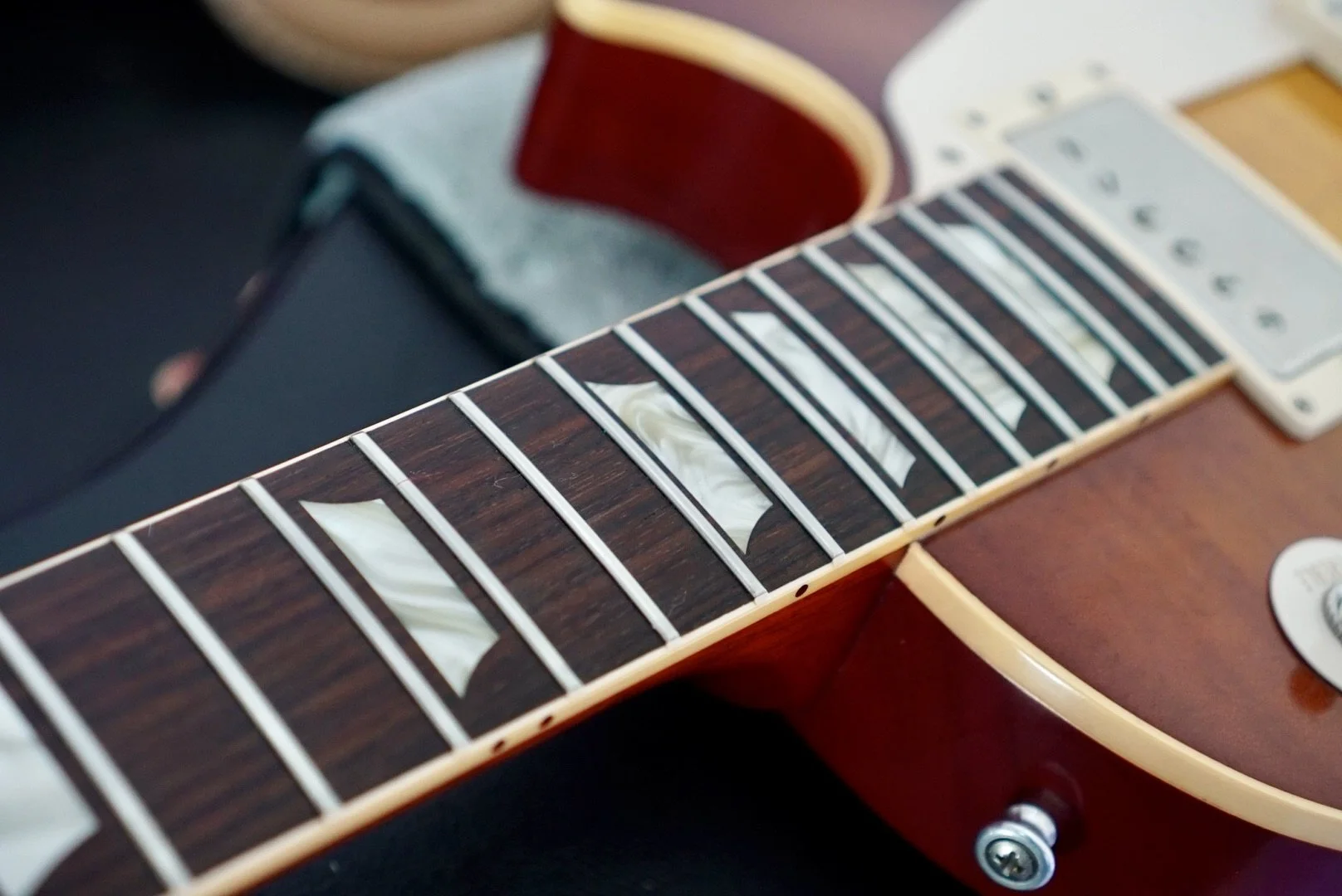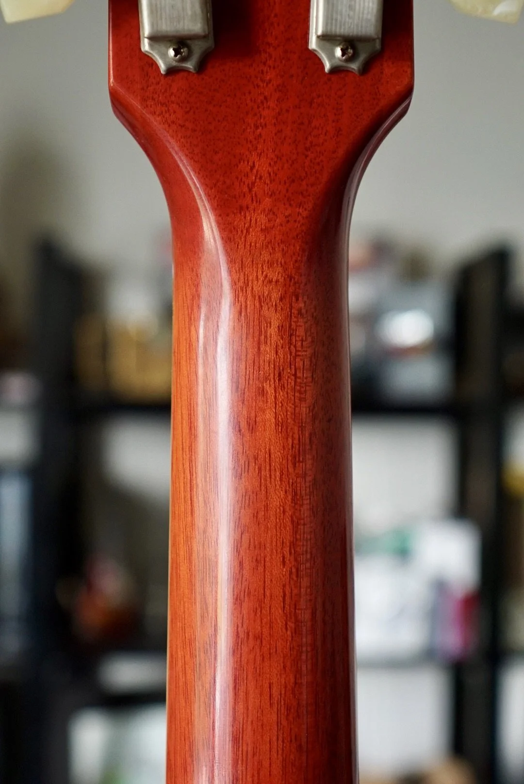 The 59 style neck is nice and real fun to play. .91 on the first fret and 1.00 on the twelfth fret. She’s all stock and she just screams!