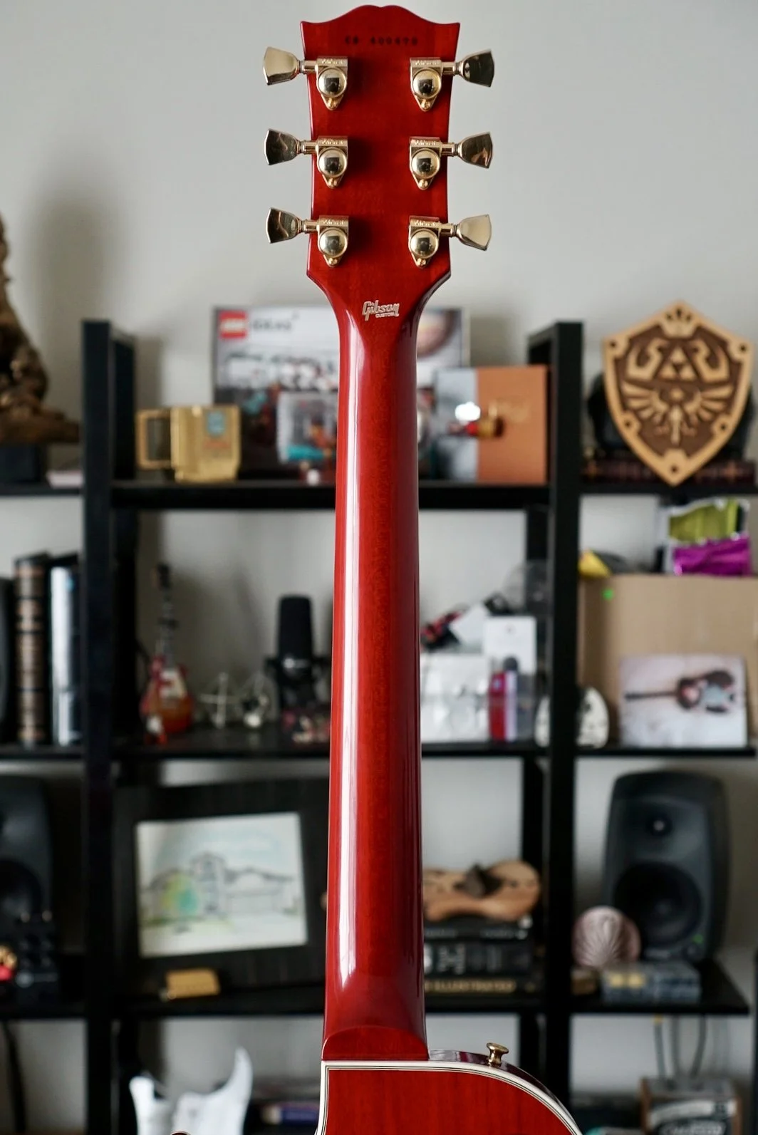 The Gibson 490r and 498t Pickups are responsive and articulate. She is bright and smooth on the bridge pickup and warm and clear on the neck. This guitar is very resonant and loud plugged in and unplugged.