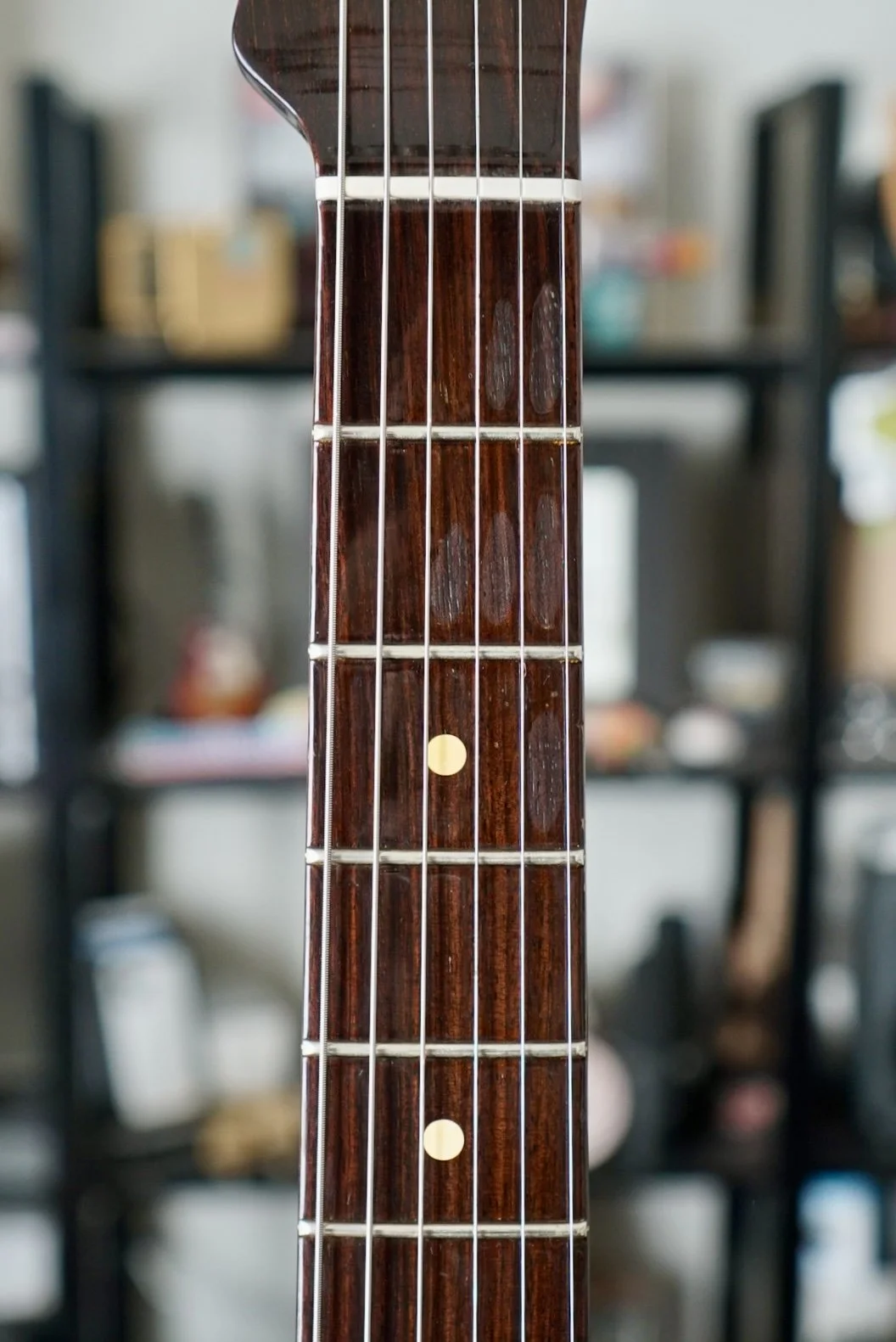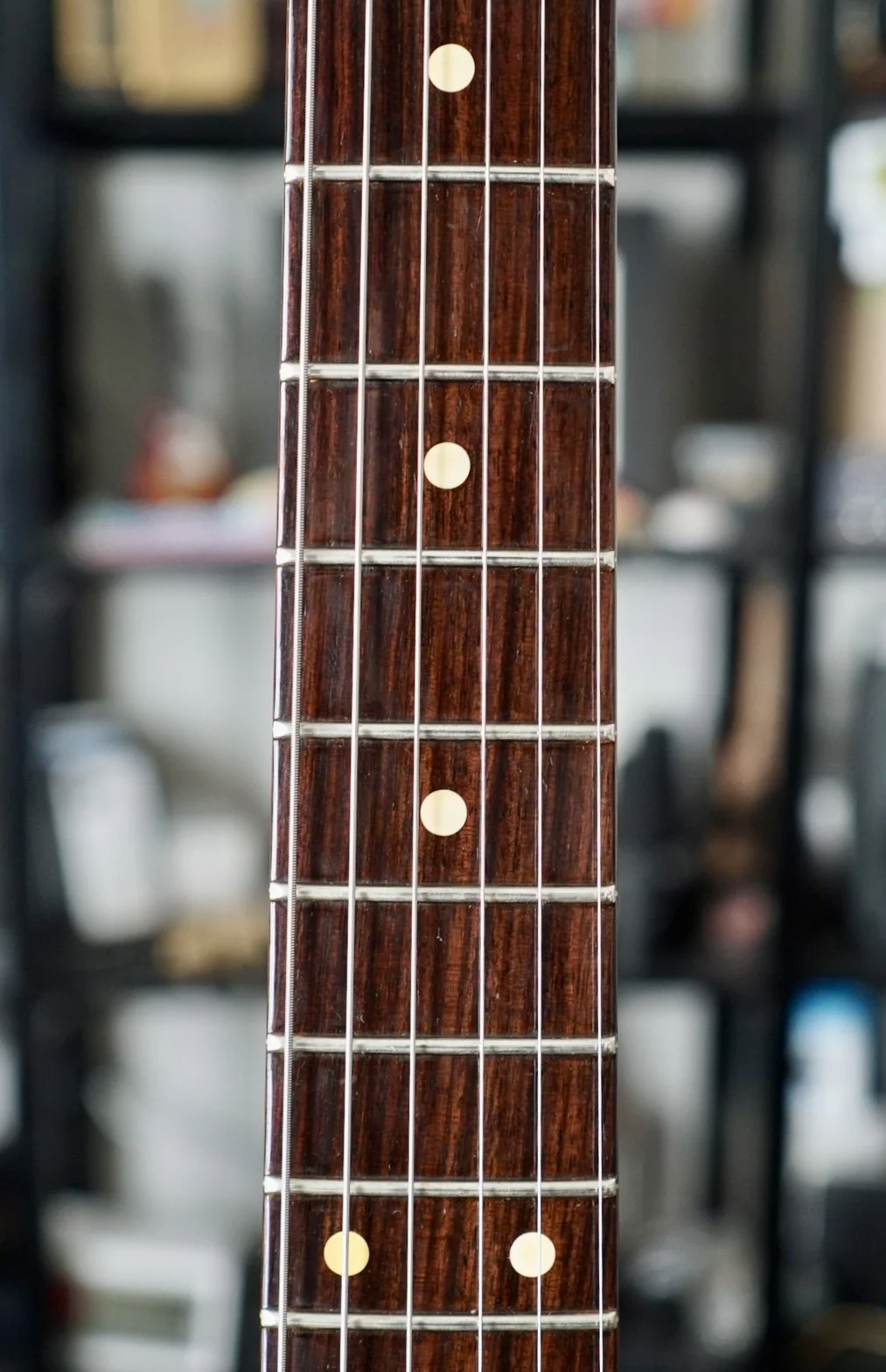 I could talk all day about how great she sounds but for reals with this one ITS ALL ABOUT THAT ROSEWOOD NECK! The 63 Strat Style “C” neck glides and is a perfect fit for this guitar!