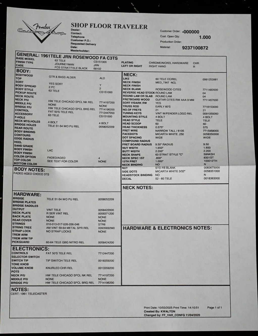 Comes with COA, Paperwork, and Custom Shop Hard Case.