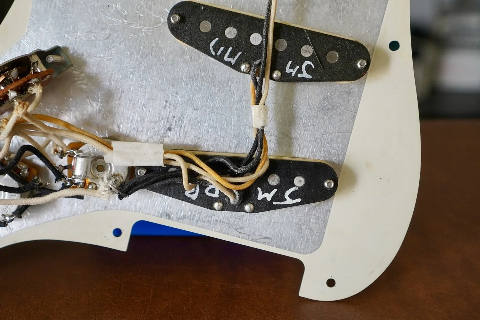 Here are the FAMOUS JOHN MAYER Single Coils on an aged to perfection loaded guard. Ready to drop in!