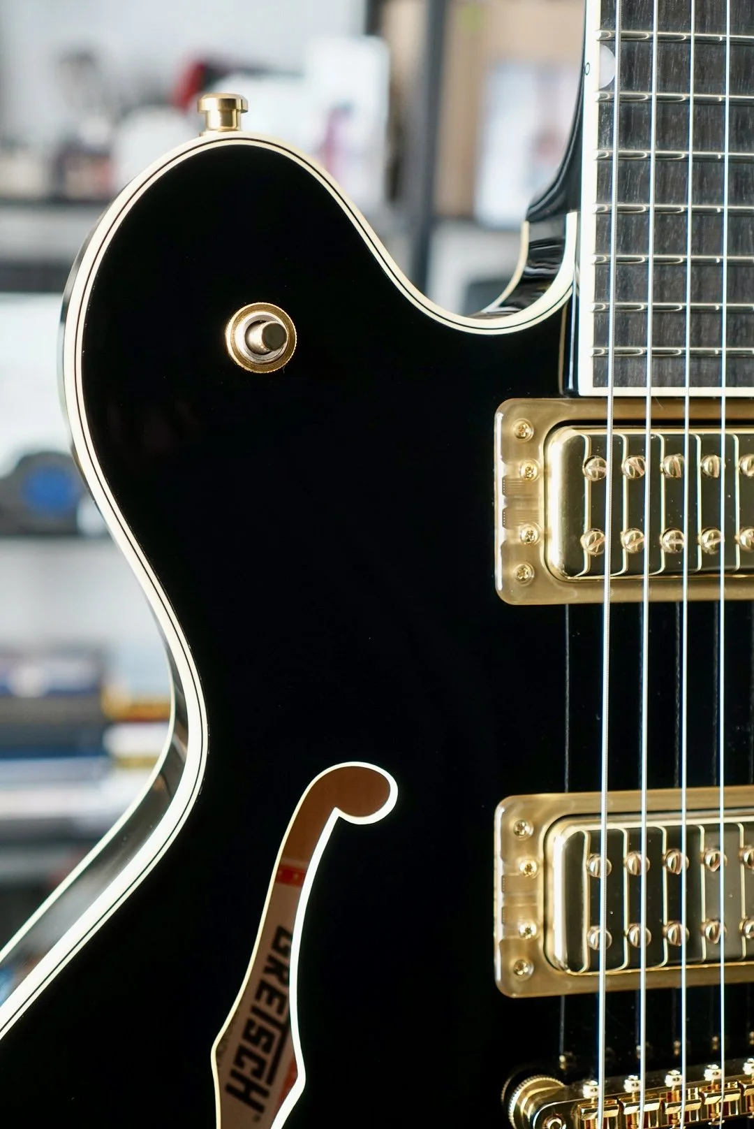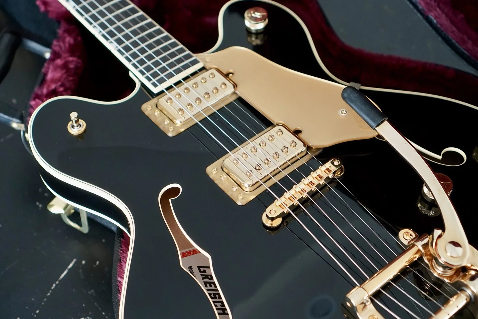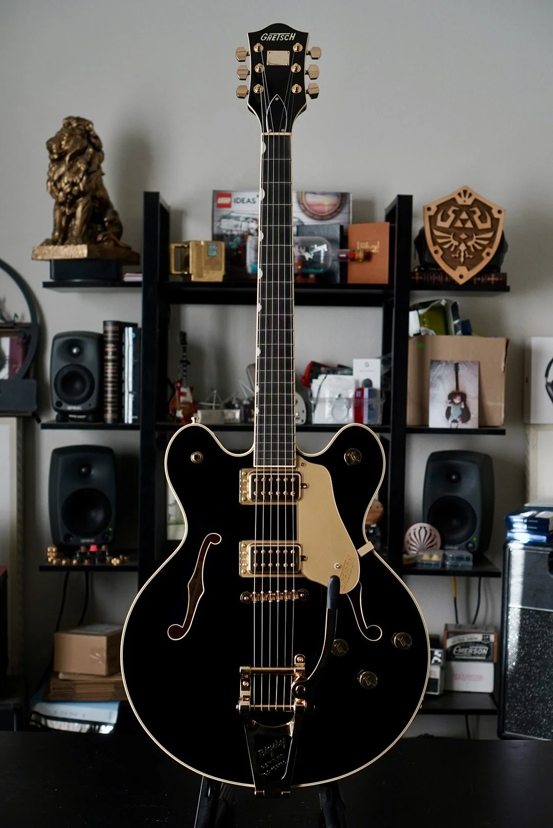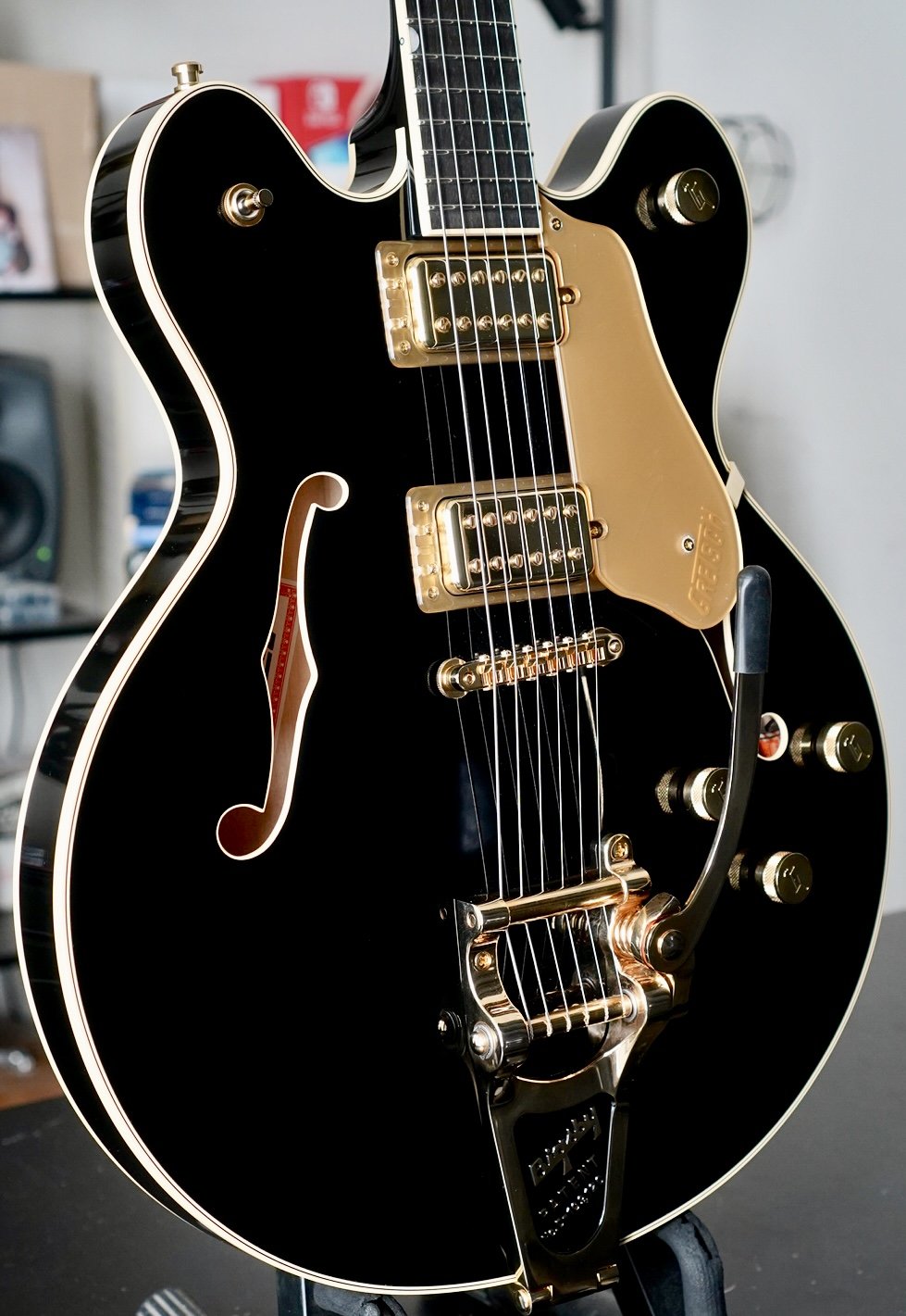 Gretsch Hollow body tone for days. The setup is killer and I hope it stays that way through shipping because she really is a great player.