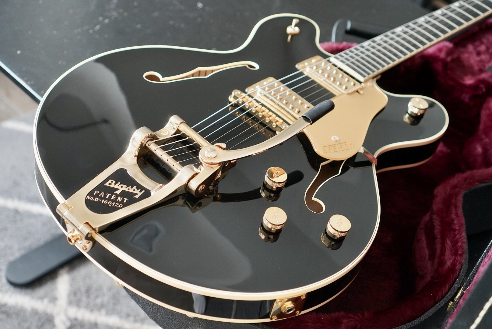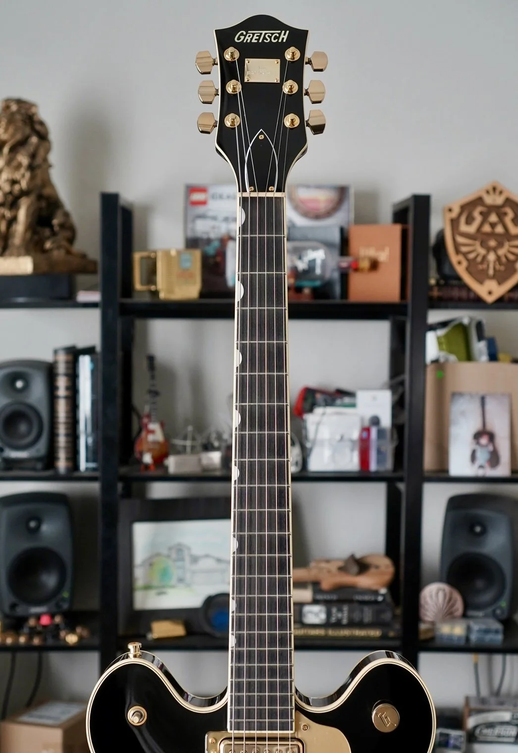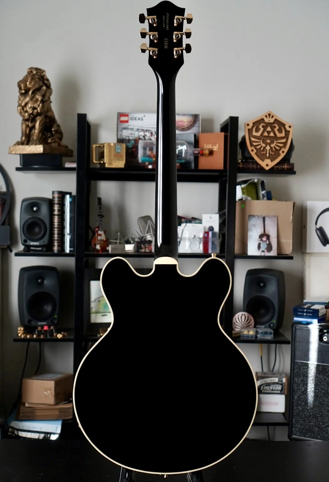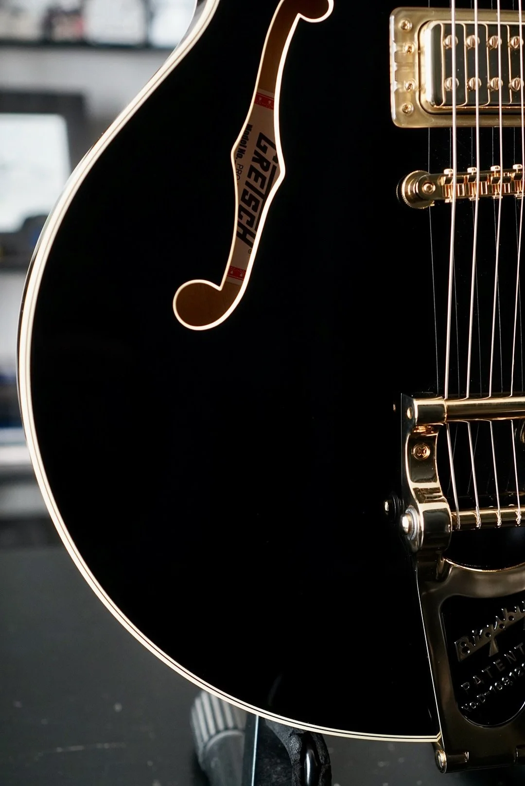 Gretsch Hollow body tone for days. The setup is killer and I hope it stays that way through shipping because she really is a great player.