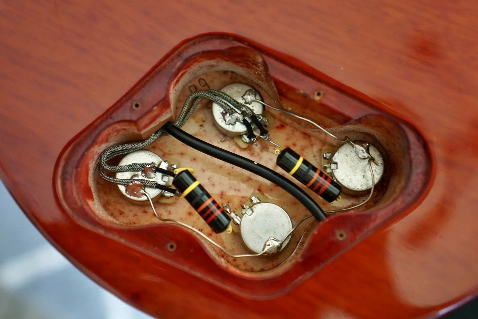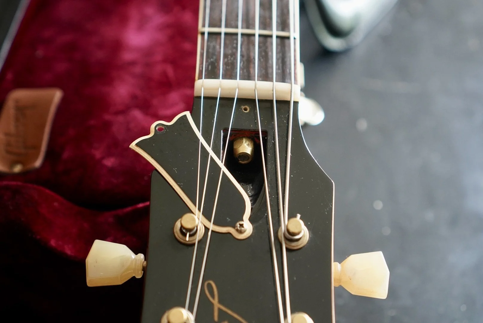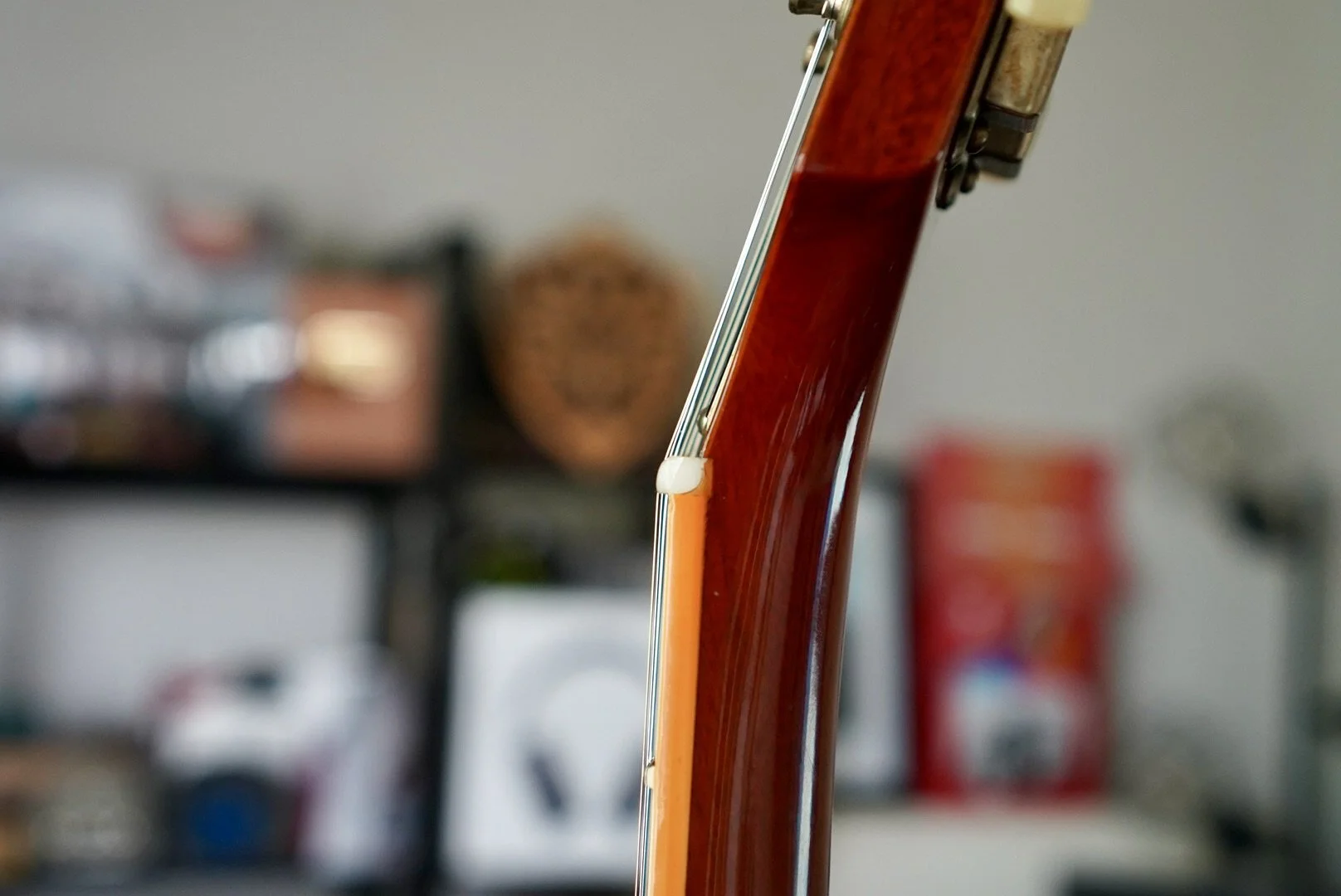She’s in EXCELLENT CONDITION with very minor cosmetic signs of use. One small scratch by the Tone Cavity, a small impression on the underside, and a small imperfection on the guard is all I can find.