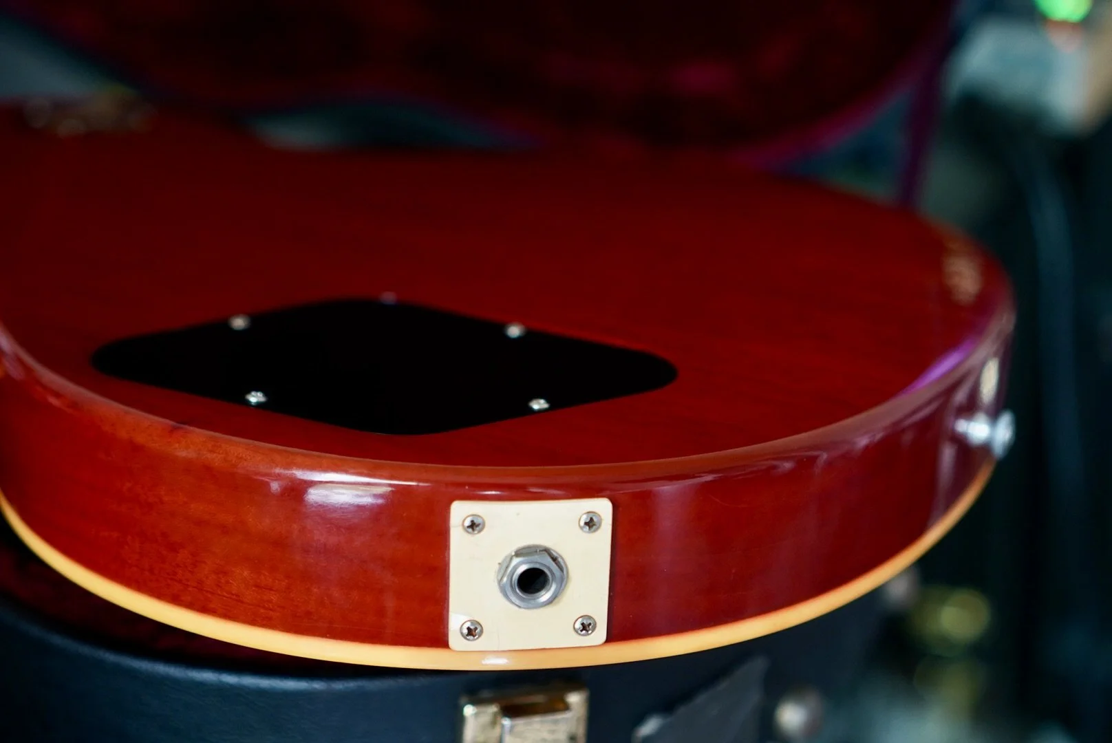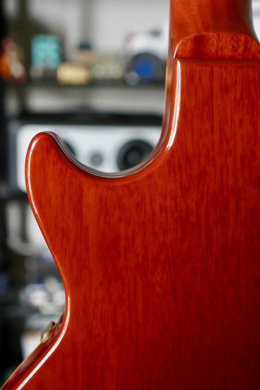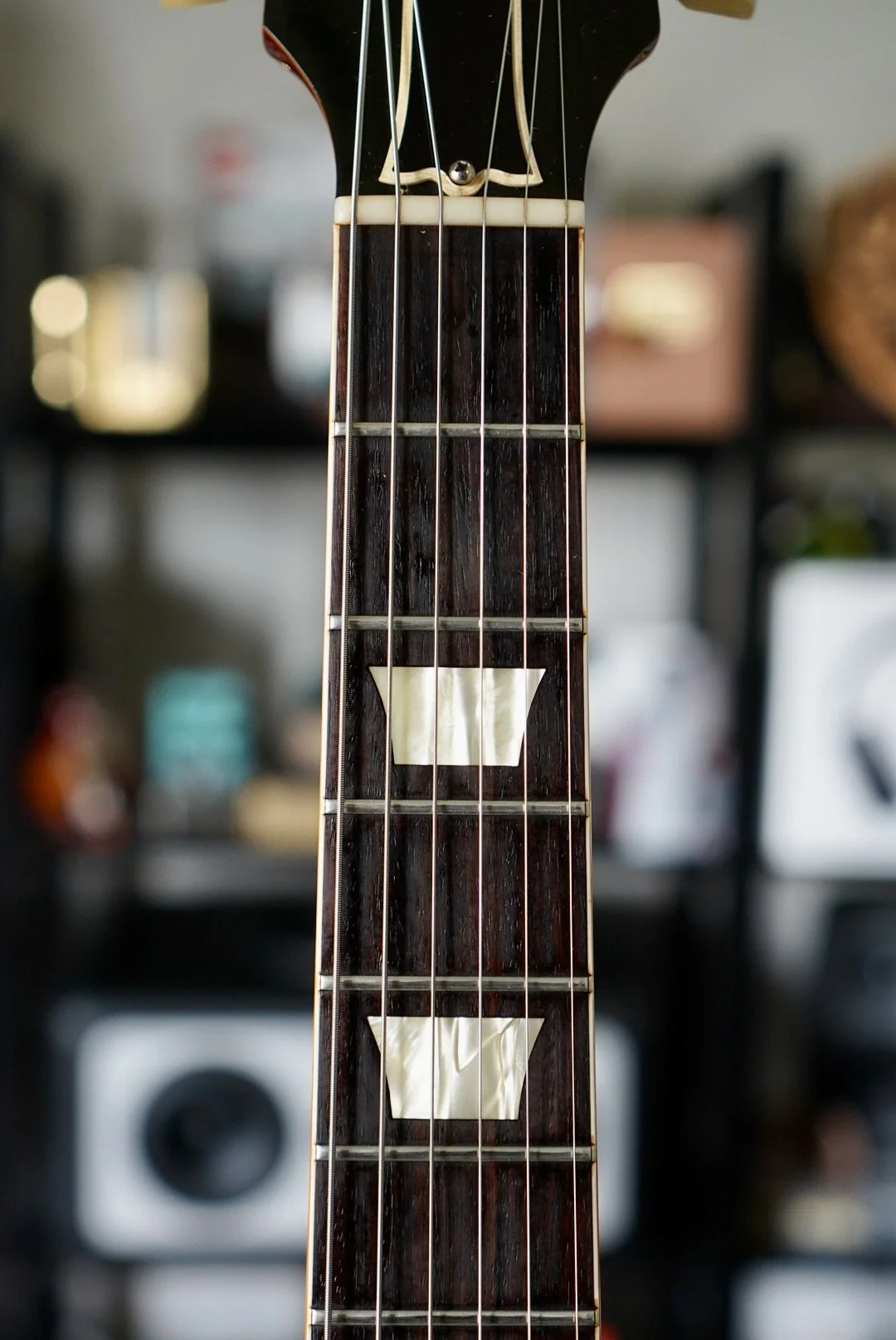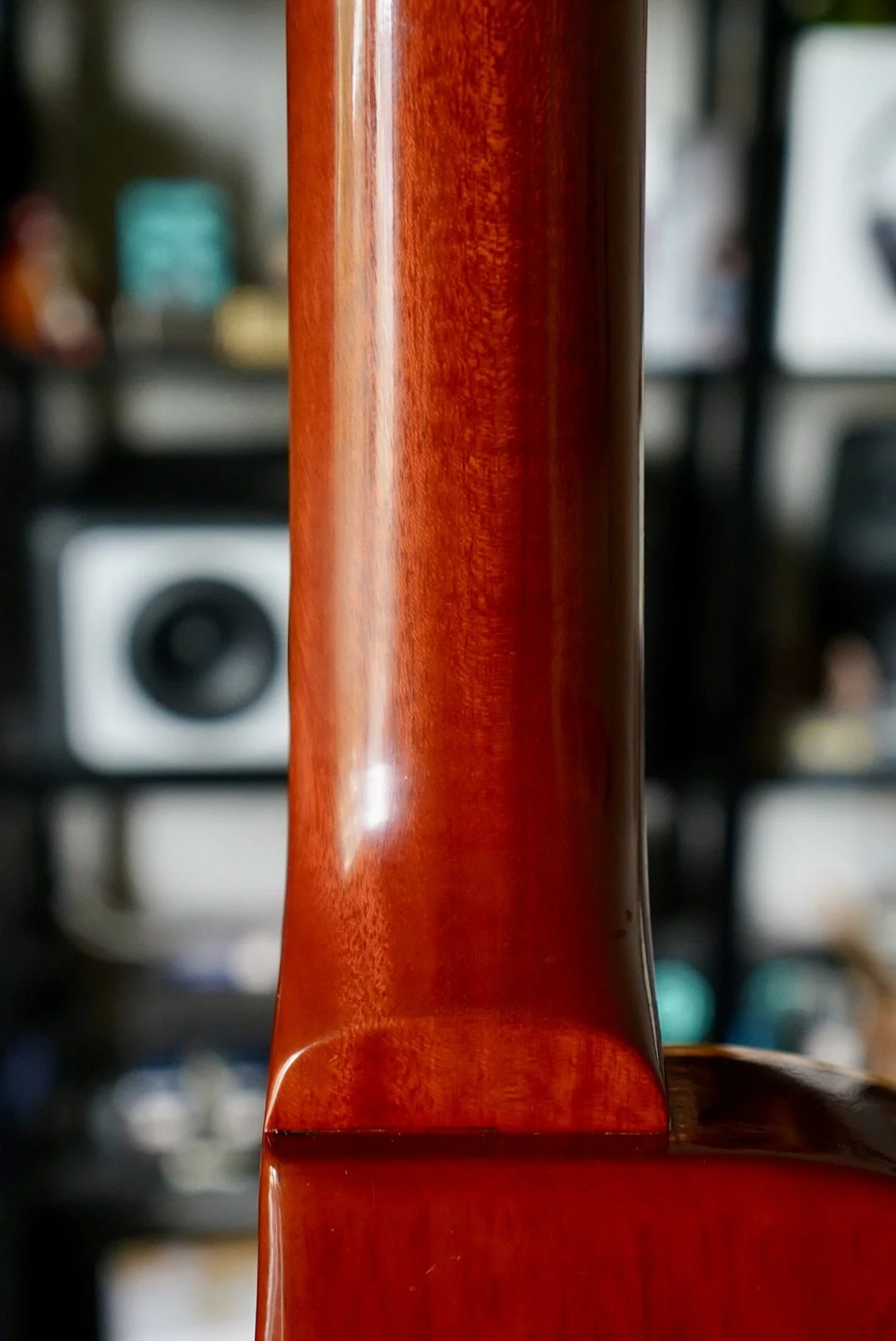 She’s in EXCELLENT CONDITION with very minor cosmetic signs of use. One small scratch by the Tone Cavity, a small impression on the underside, and a small imperfection on the guard is all I can find.