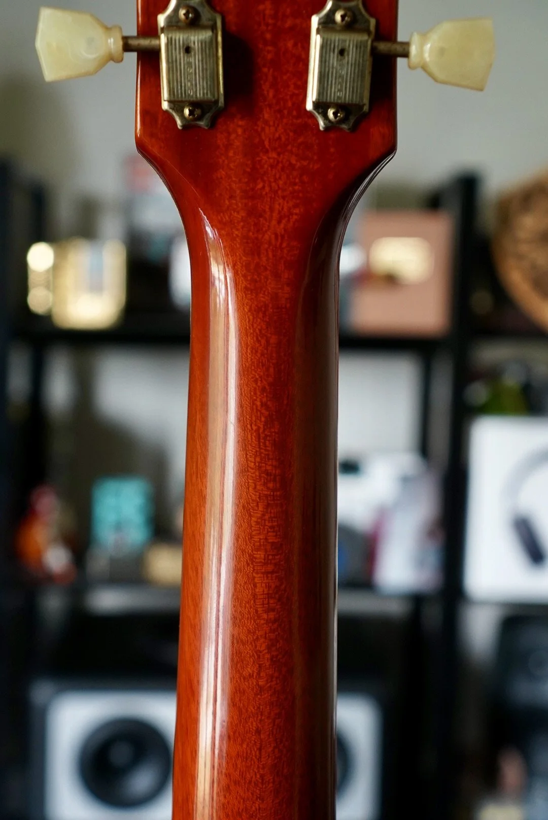 The 59 style neck is nice and real fun to play. .87 on the first fret and .96 on the twelfth fret. She’s all stock and she just screams!