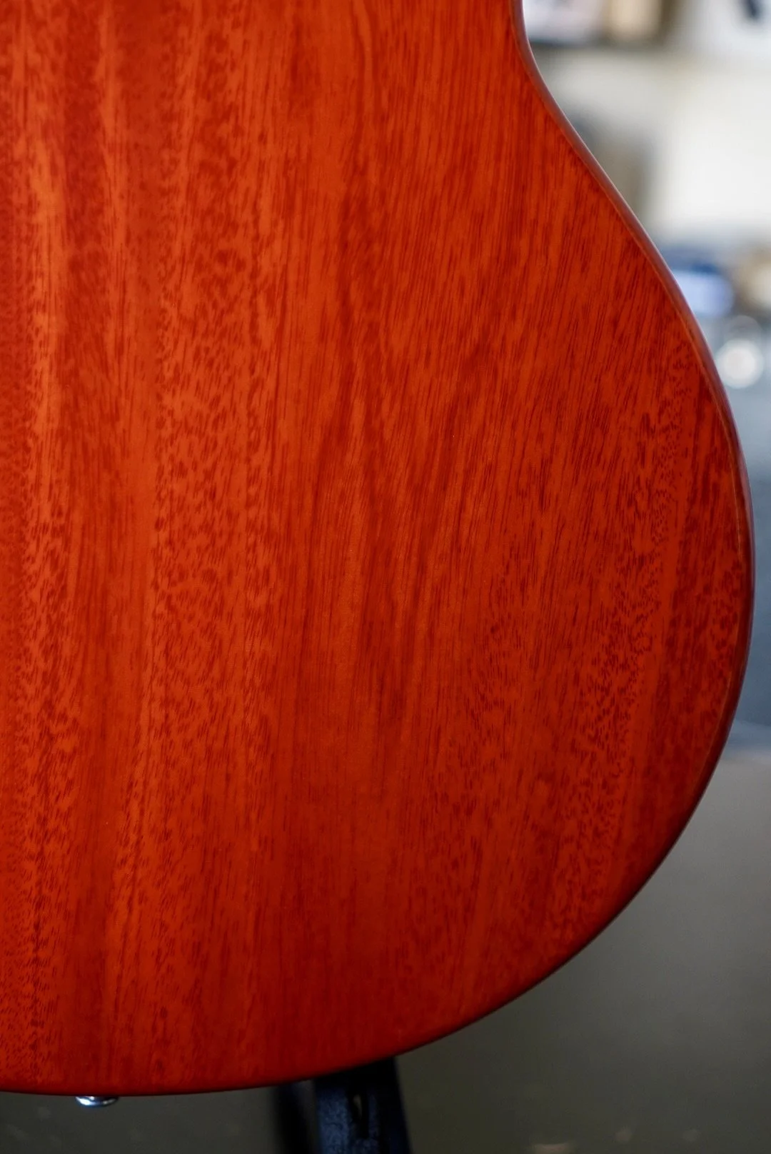 She’s in NEAR MINT CONDITION with no real signs of use outside of some light marks on the bottom of guitar that are in finish only. I did try and buff out with little success.