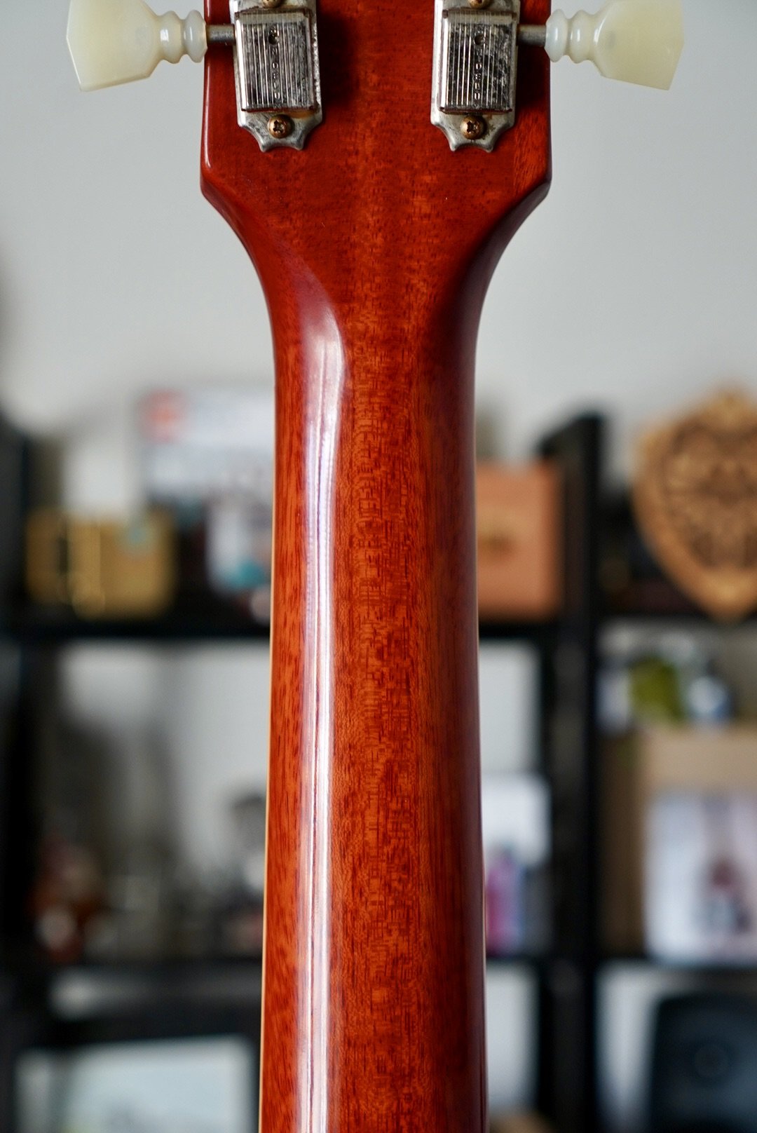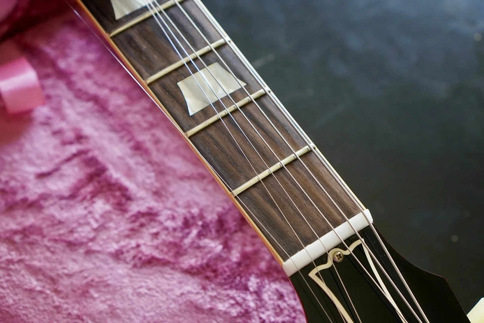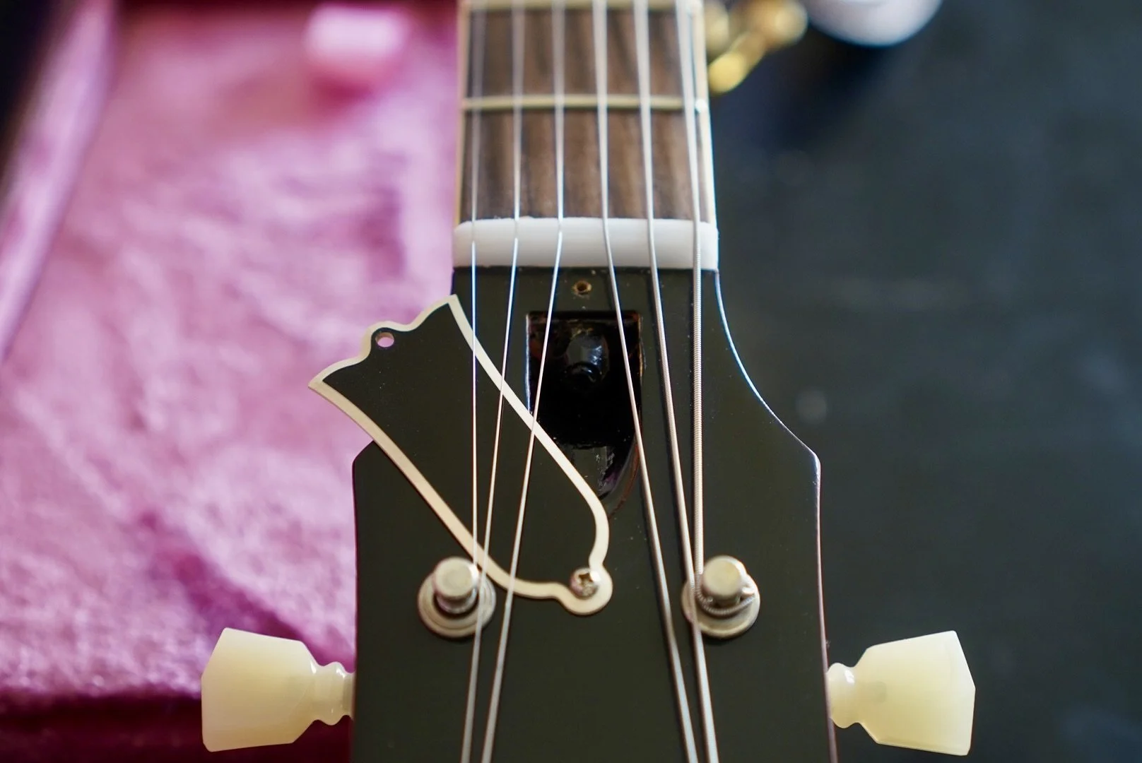 Frets look like new and have tons of life. Action is low and the neck is straight. She’s real fun to play all the way up the neck. Truss turns as it should and is basically untouched. No issues!