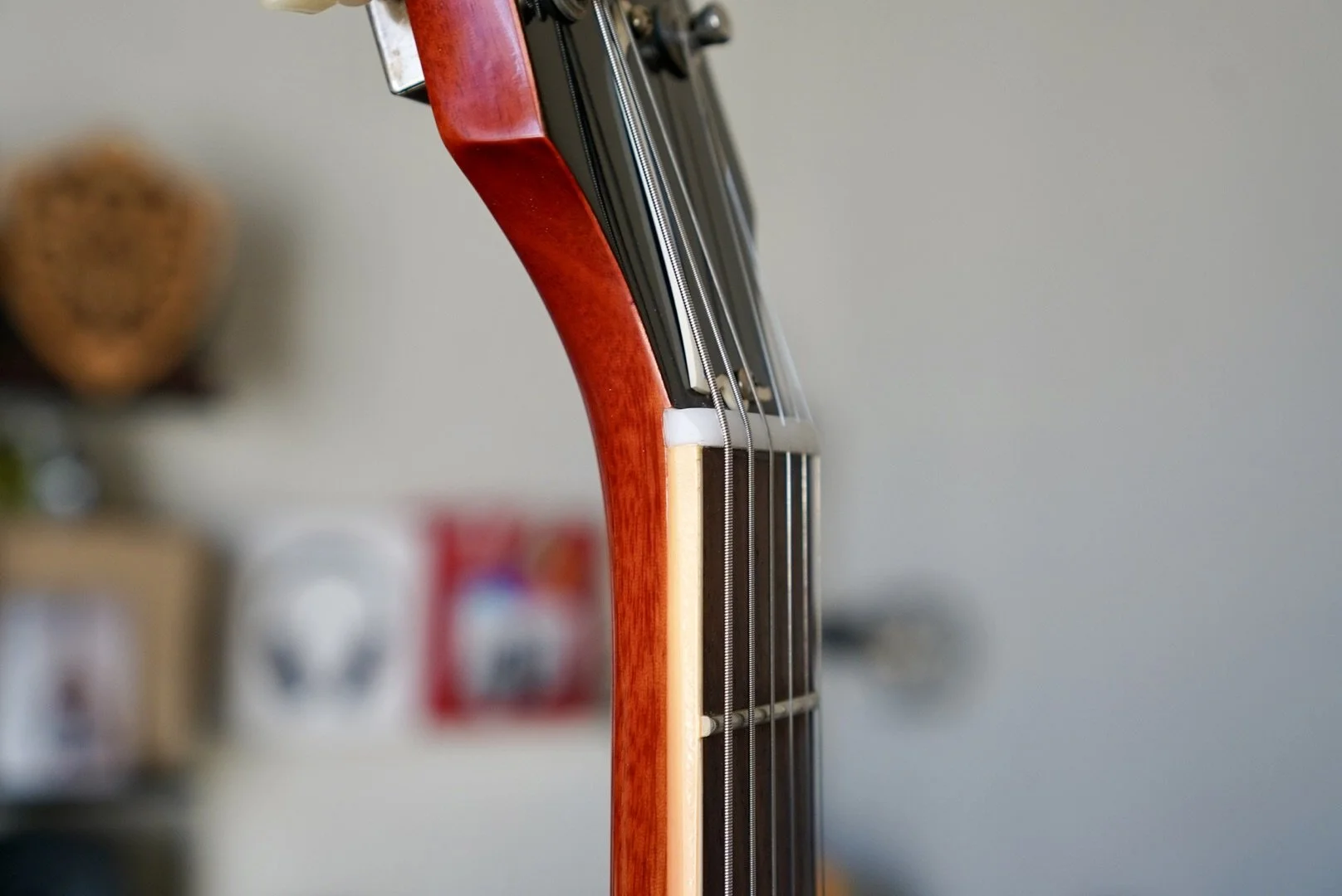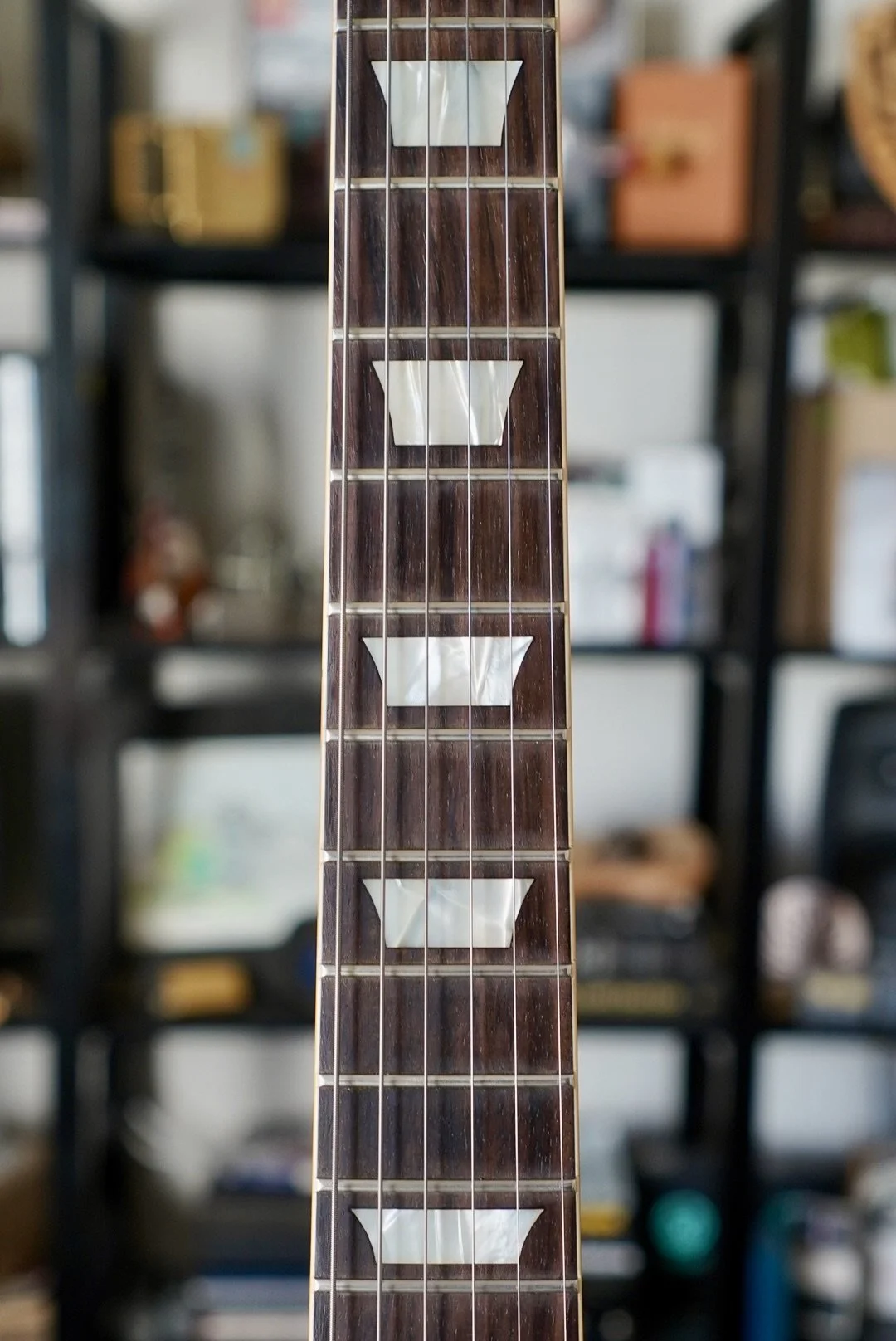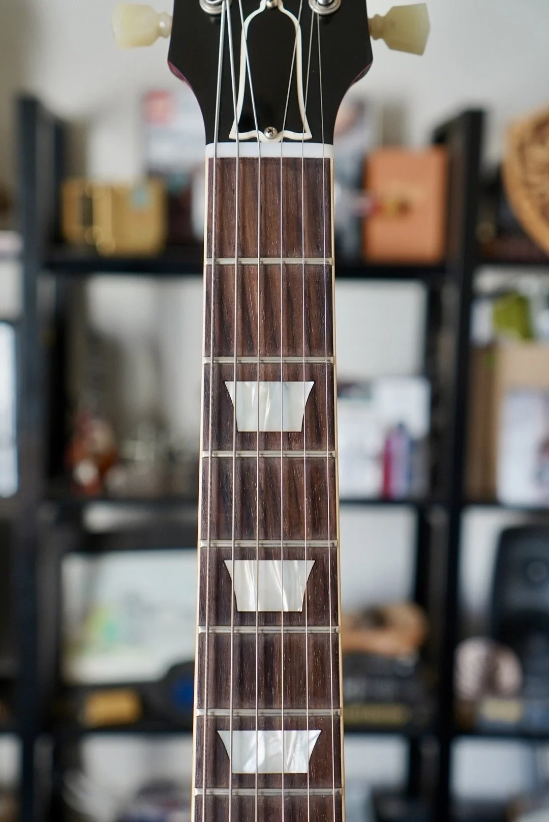 Frets look like new and have tons of life. Action is low and the neck is straight. She’s real fun to play all the way up the neck. Truss turns as it should and is basically untouched. No issues!