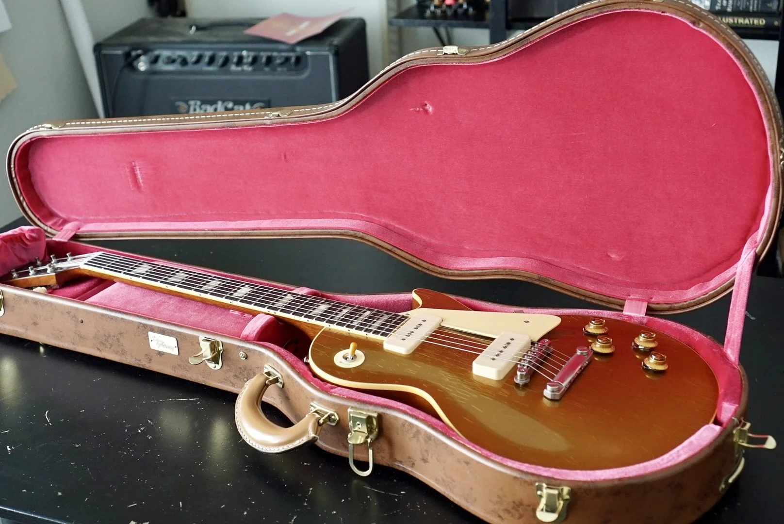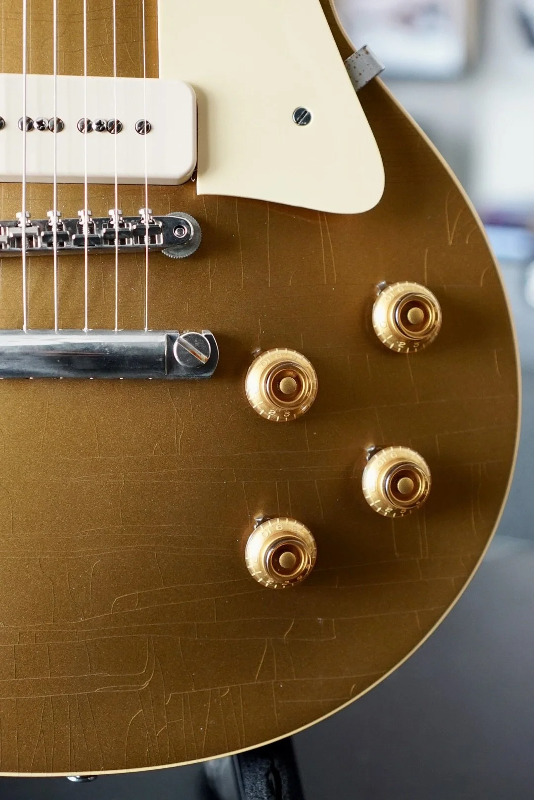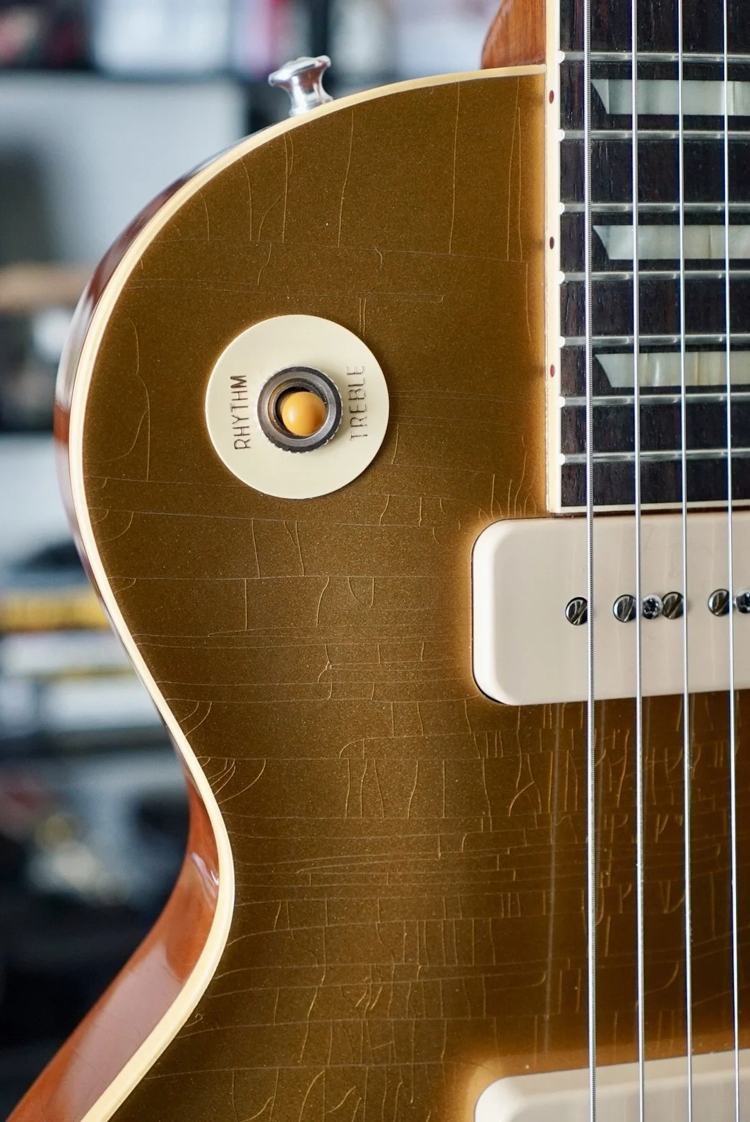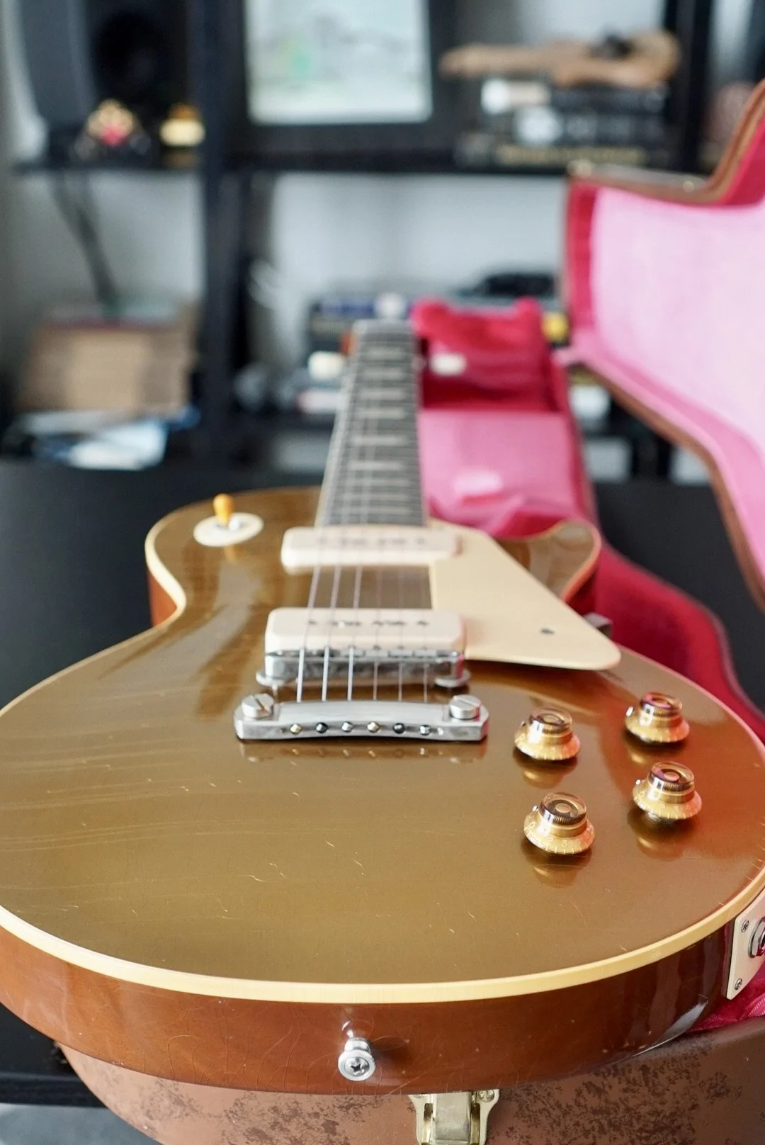 The stock P90s are responsive and articulate. She is bright and smooth on the bridge pickup and warm and clear on the neck.