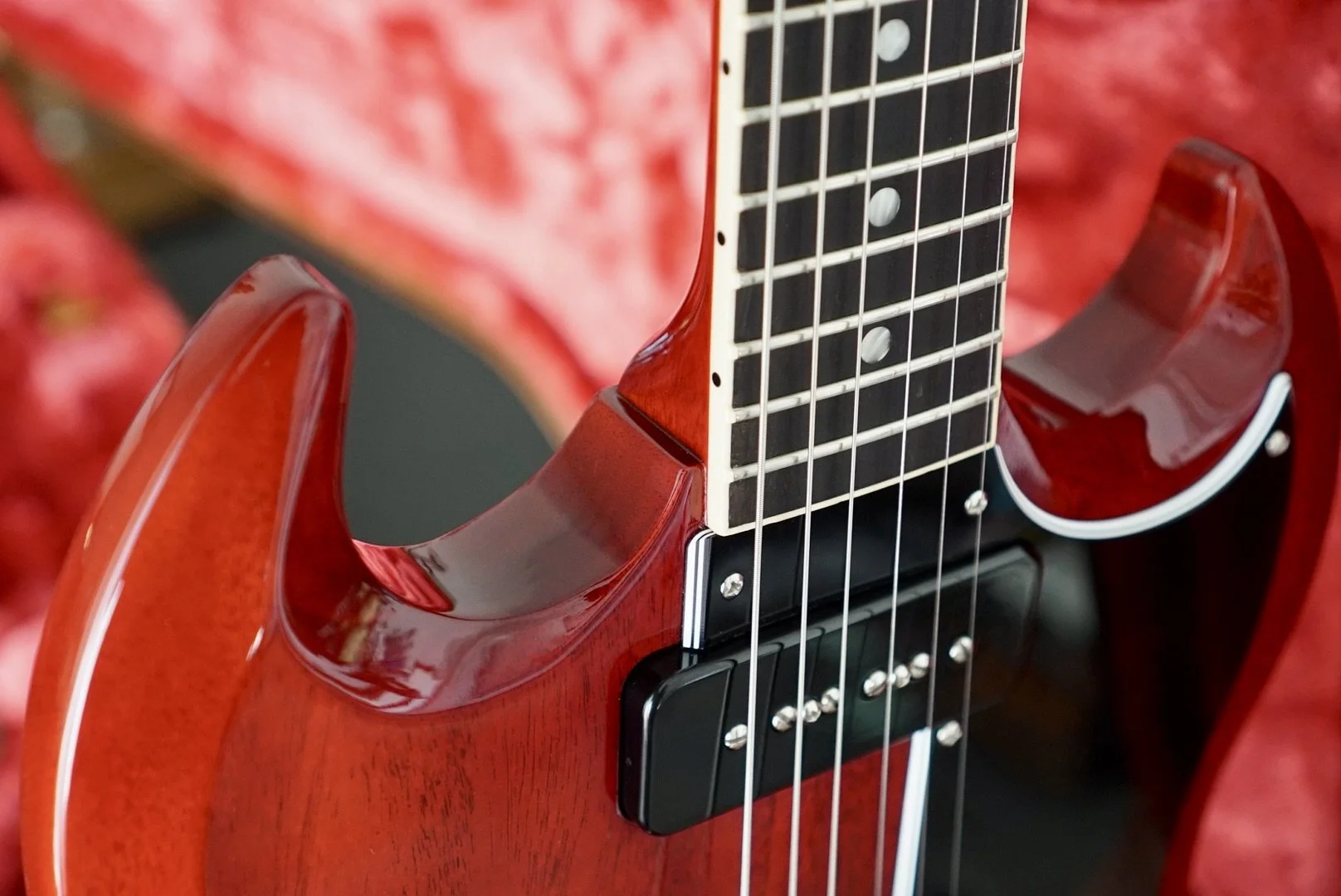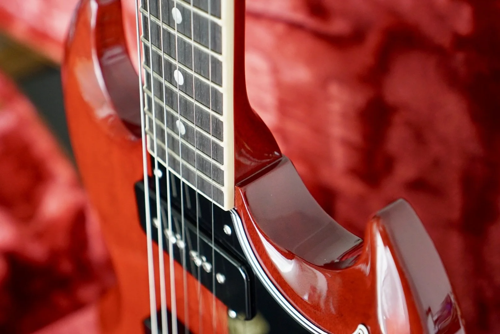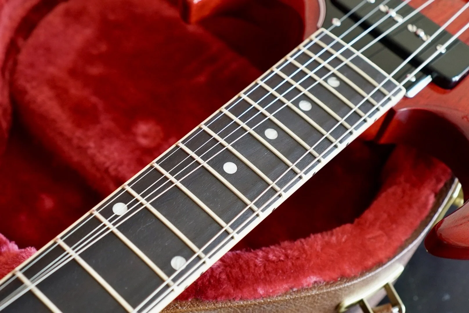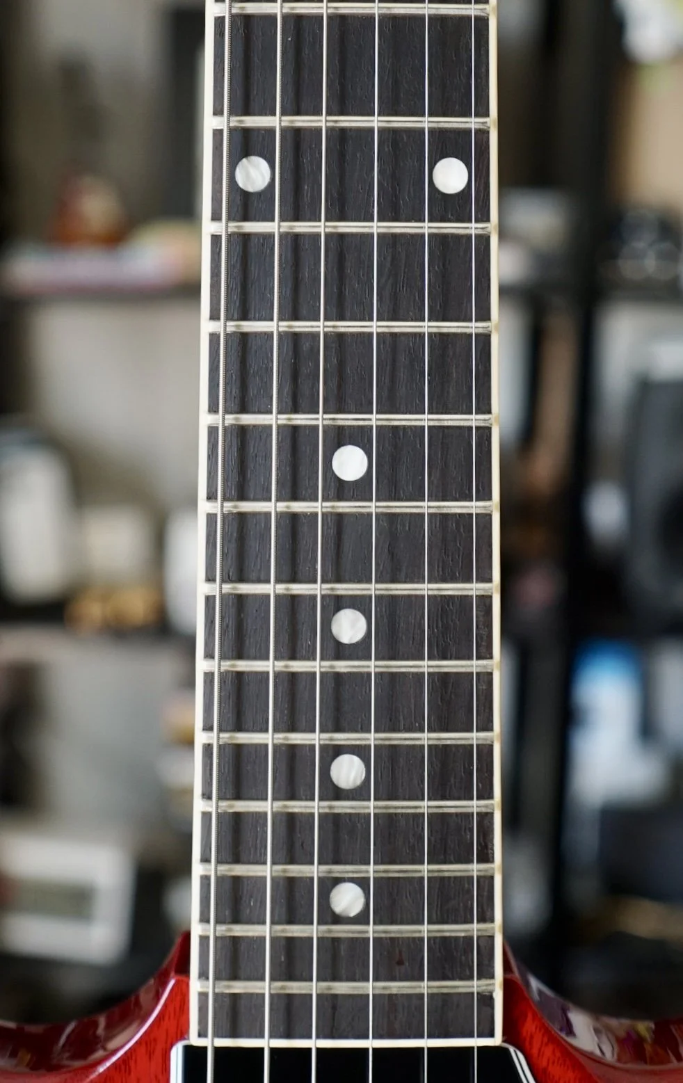 Neck is chunky for an SG and feels absolutely fantastic. .79 on the first fret and .91 on the twelfth.