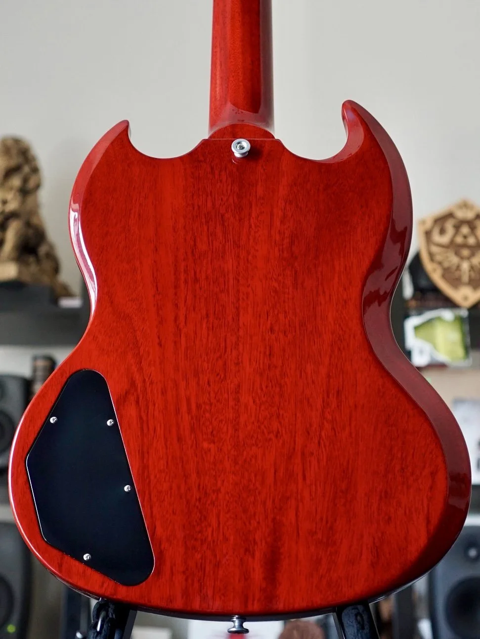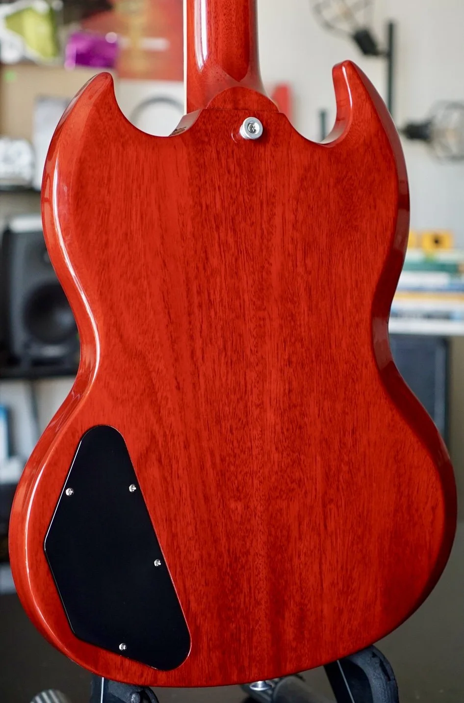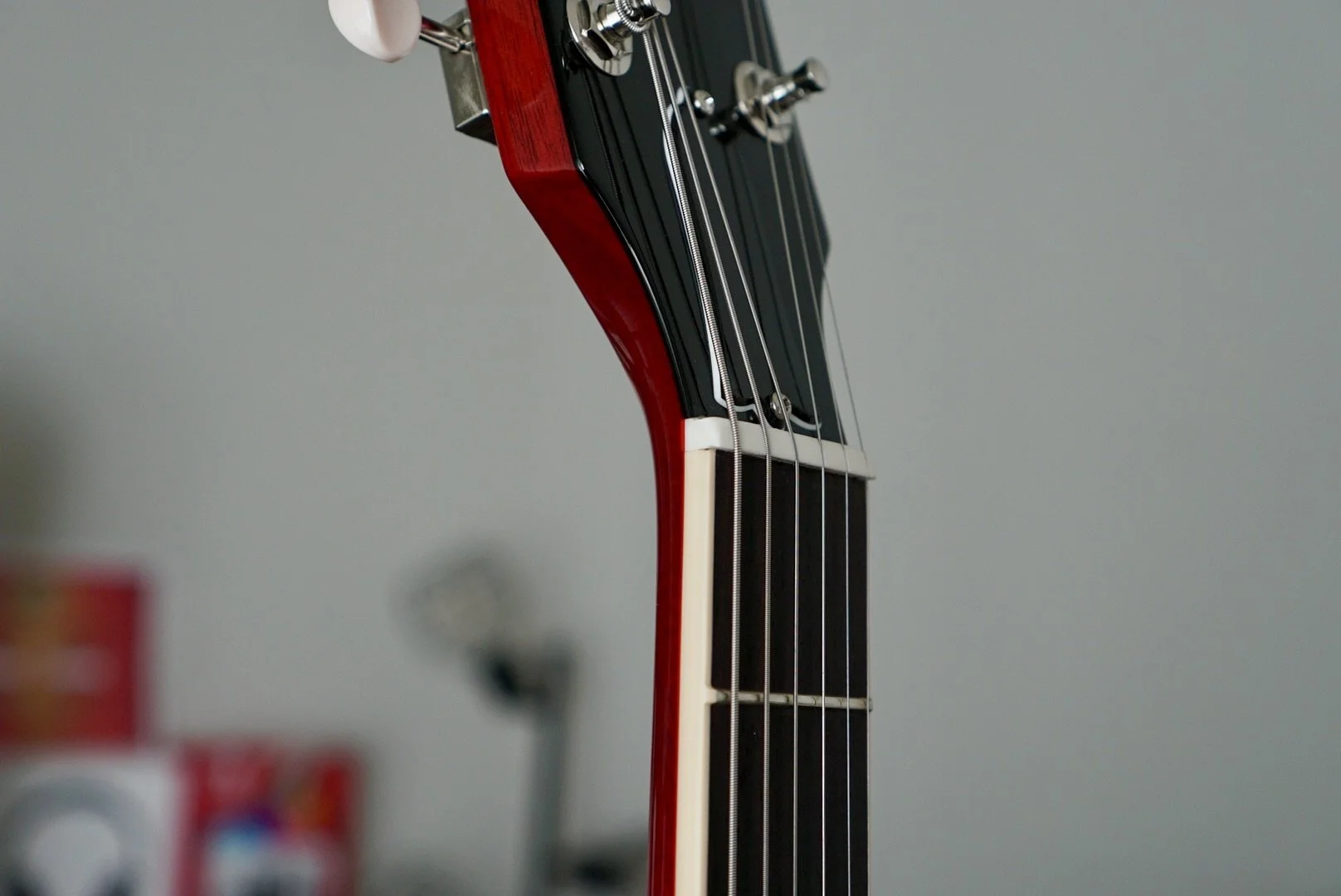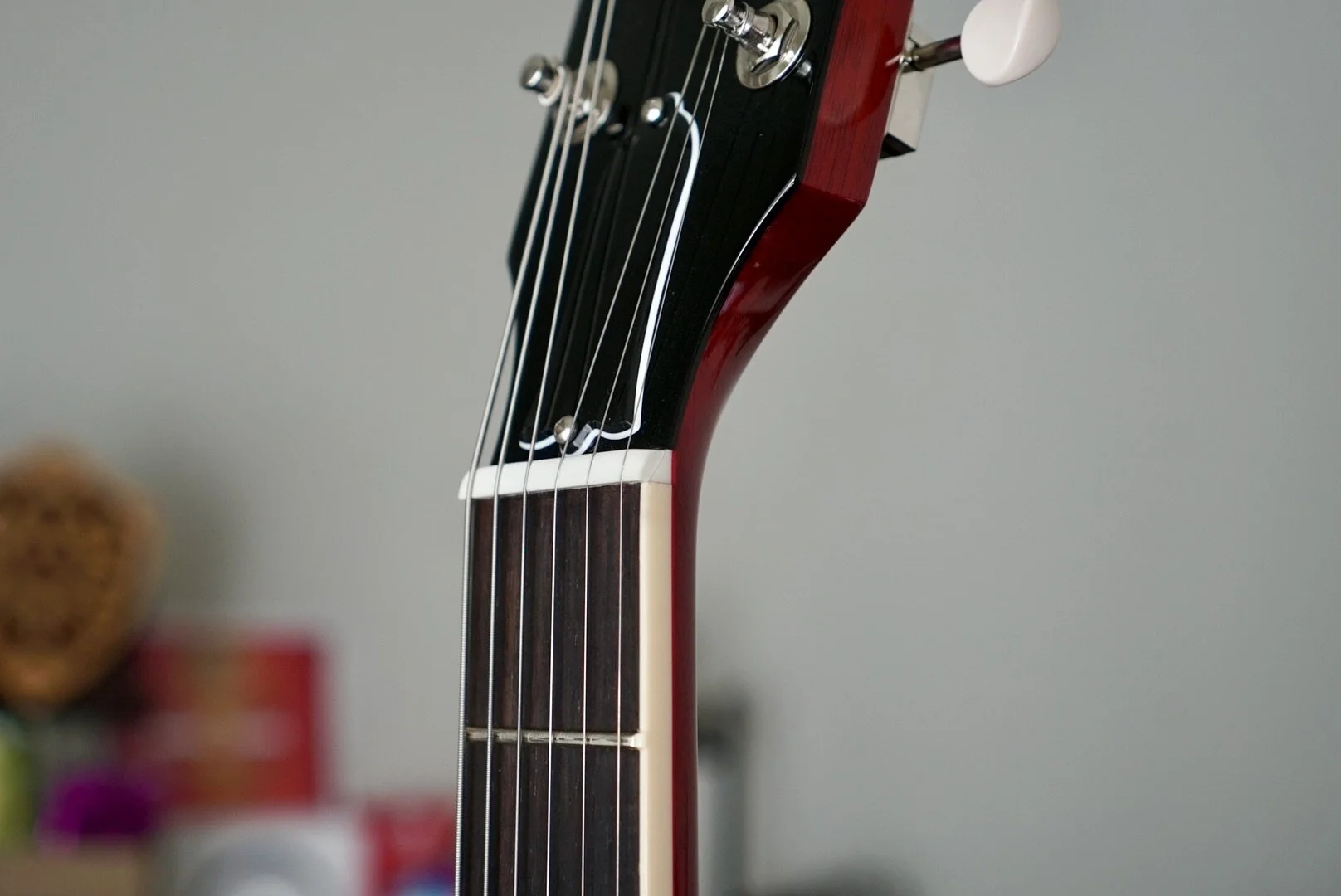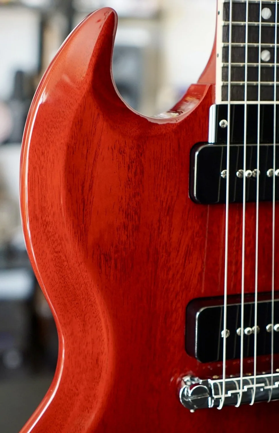 Neck is chunky for an SG and feels absolutely fantastic. .79 on the first fret and .91 on the twelfth.