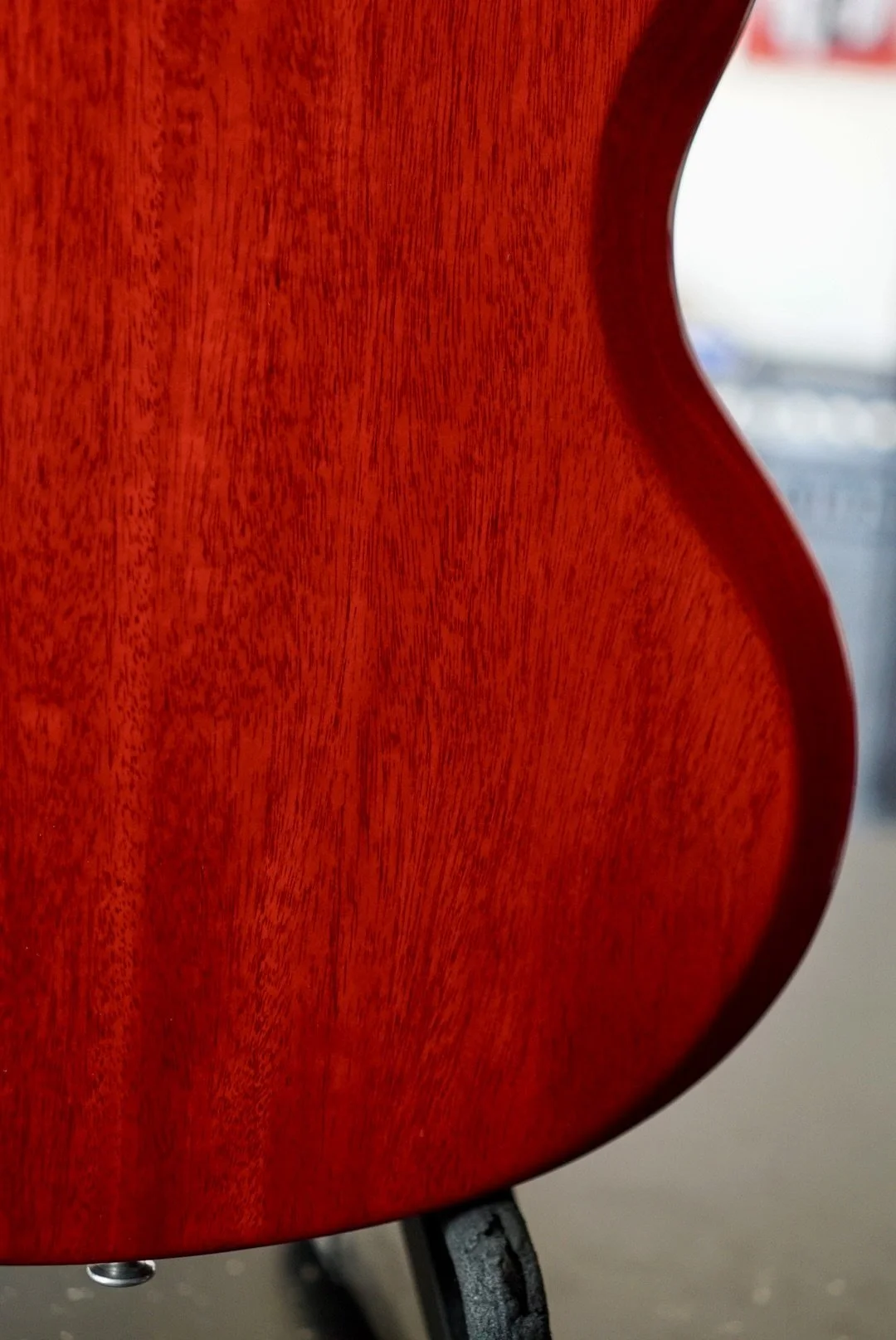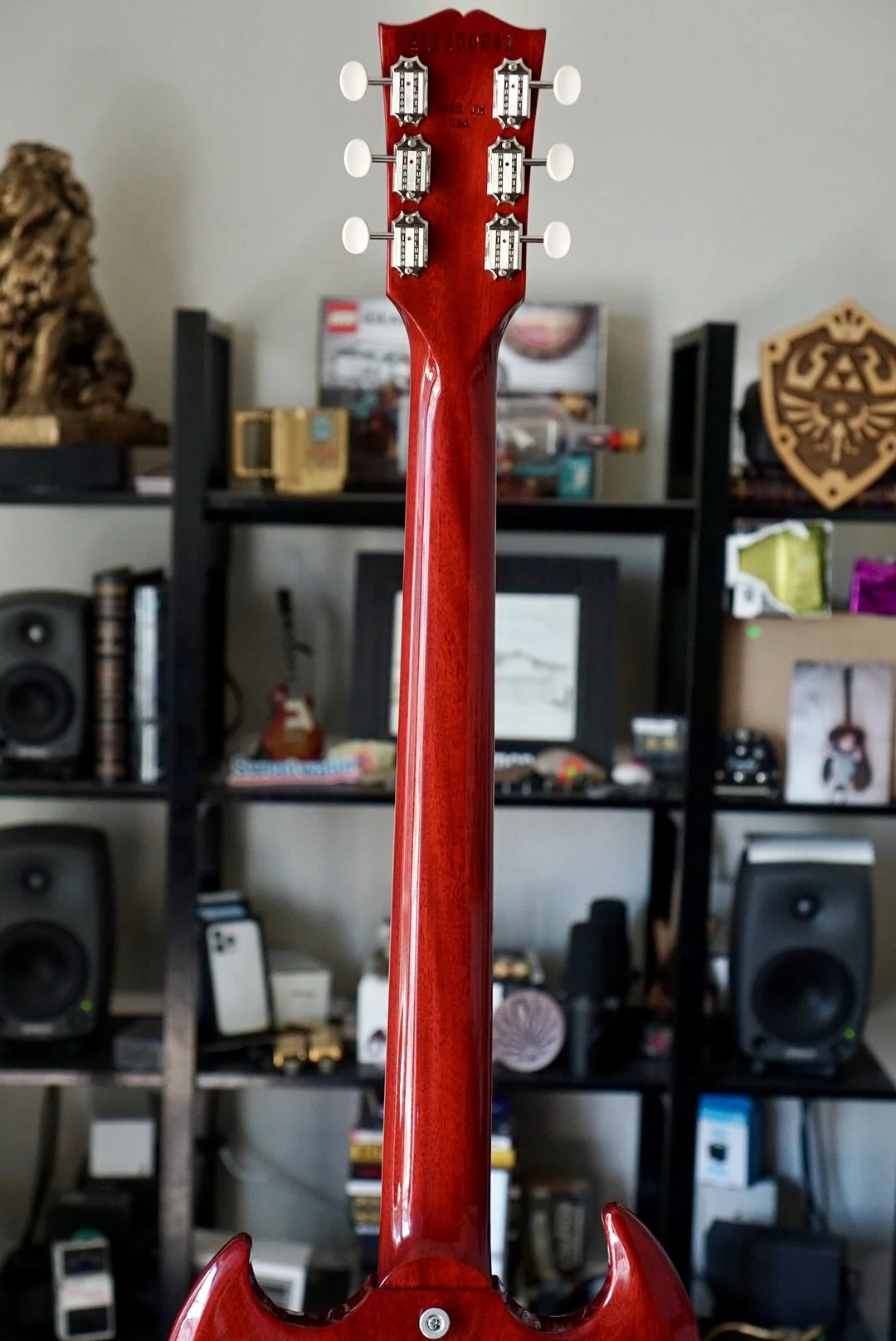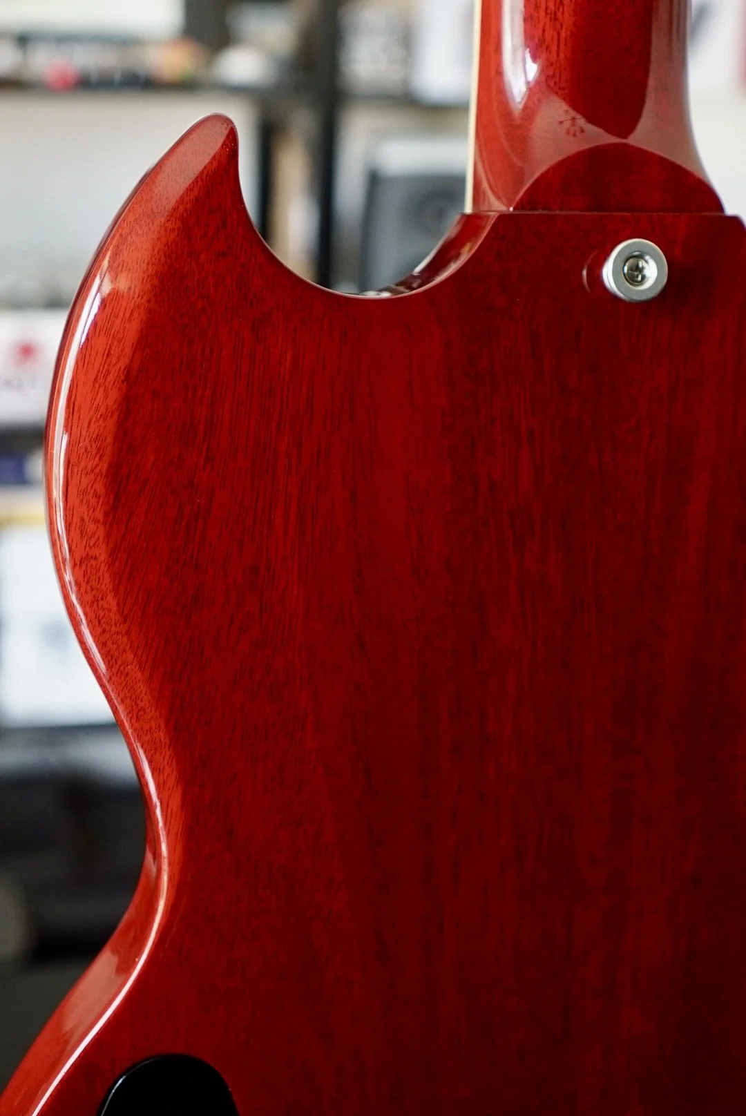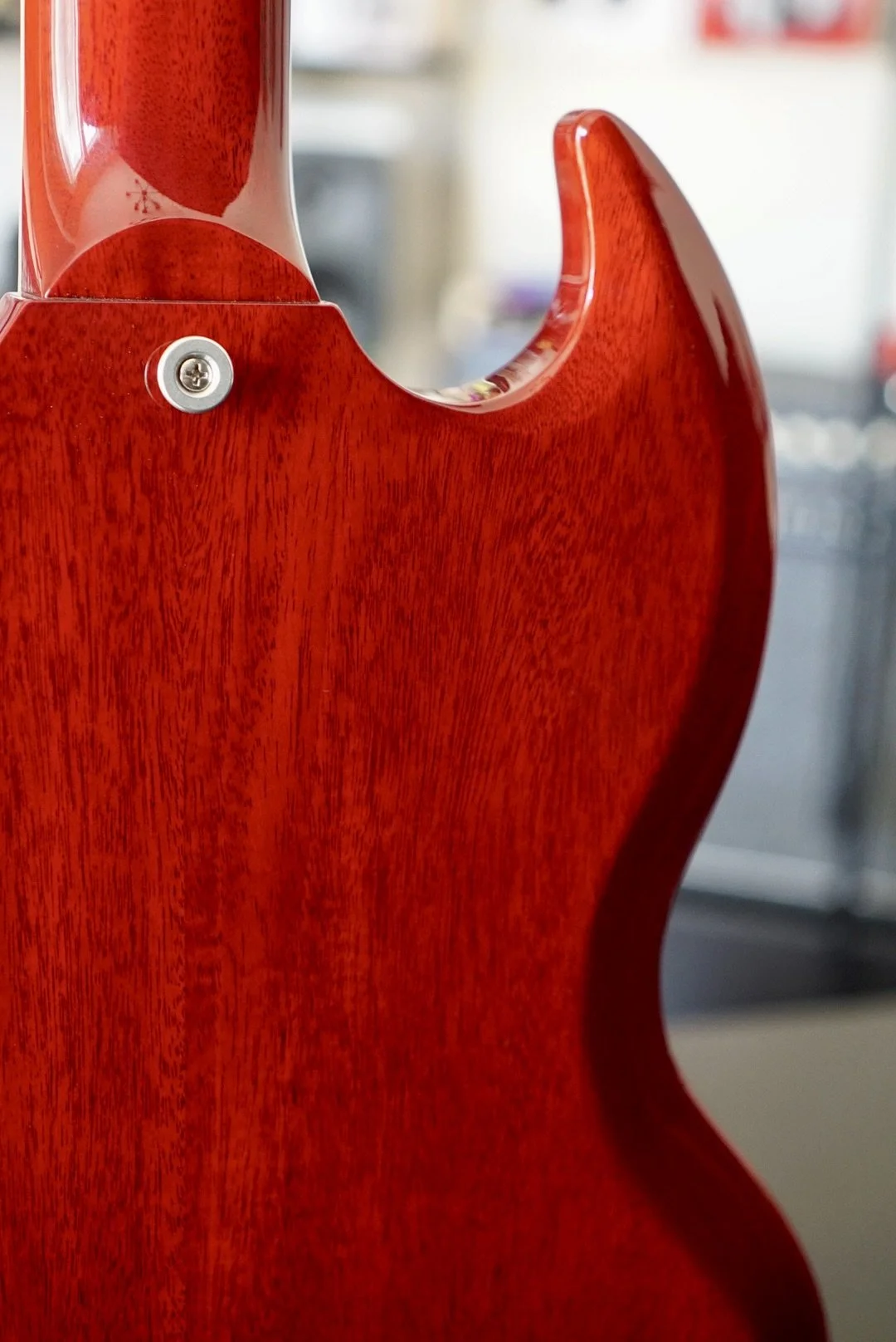 Neck is chunky for an SG and feels absolutely fantastic. .79 on the first fret and .91 on the twelfth.