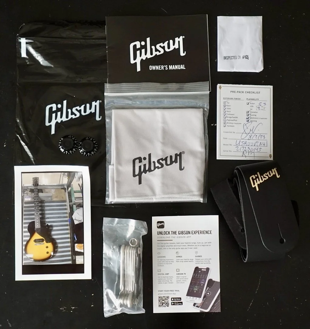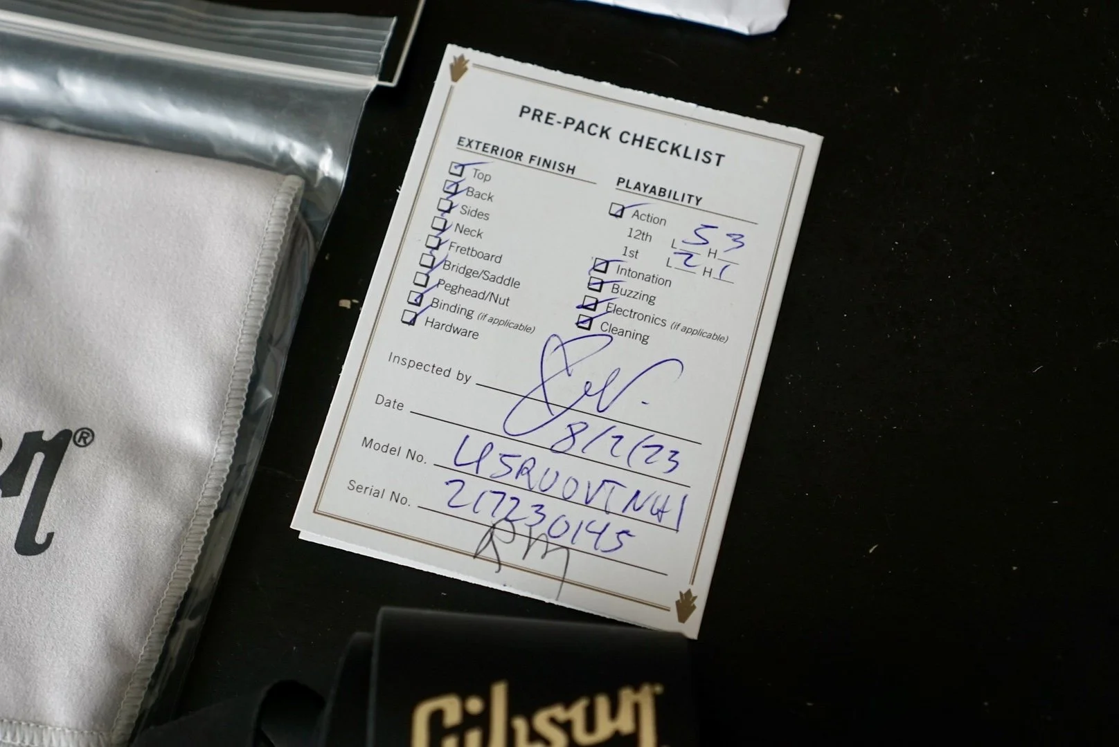 She comes in Original Gibson Hard Case with Setup tools, strap, and packing sheet.