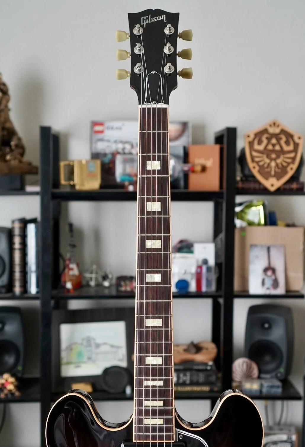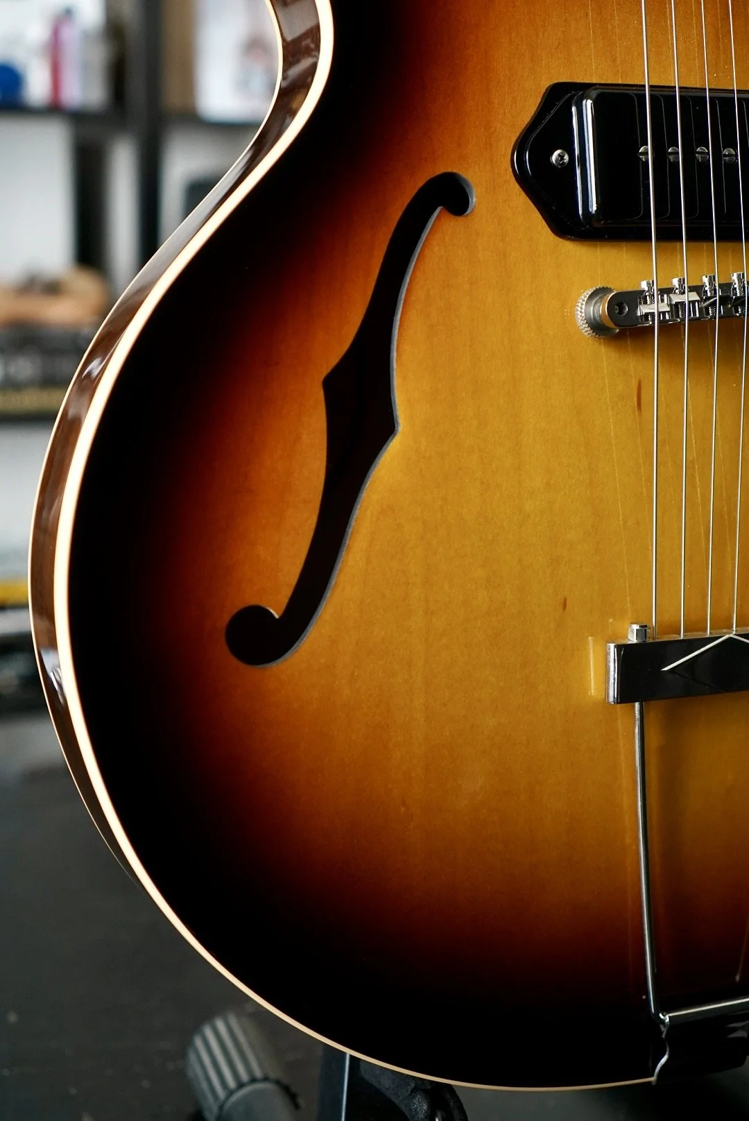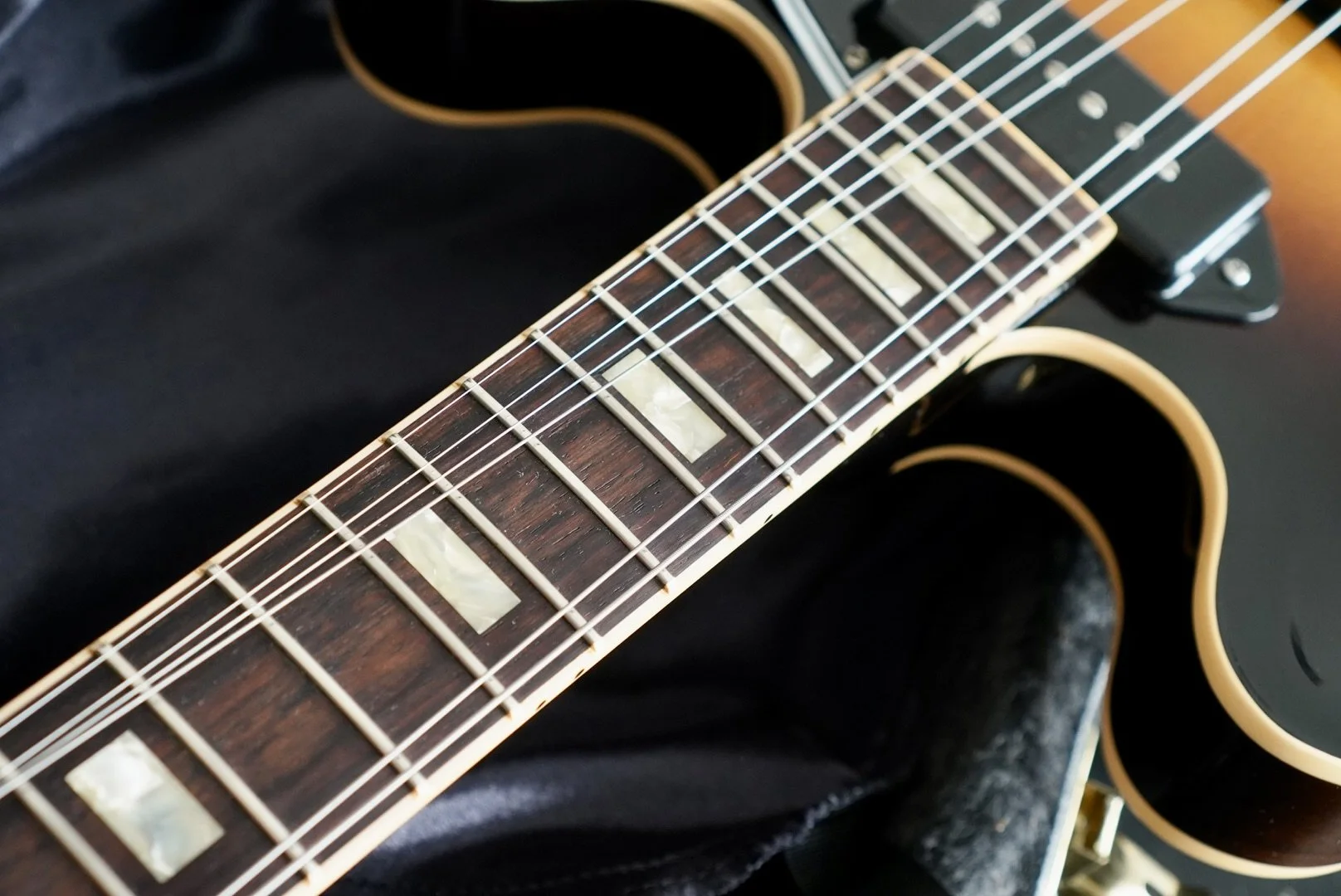 The build here is impressive and you can feel it in your hands for sure. She is smooth and resonant. This baby sustains for days!