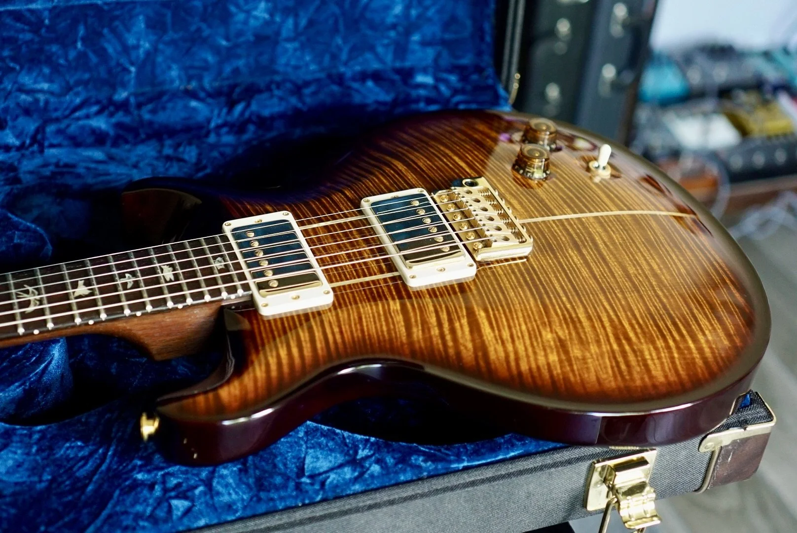 She comes in Original PRS Hard Molded Case (7/10 showing some signs of use) with Trem Bar and all the paperwork.