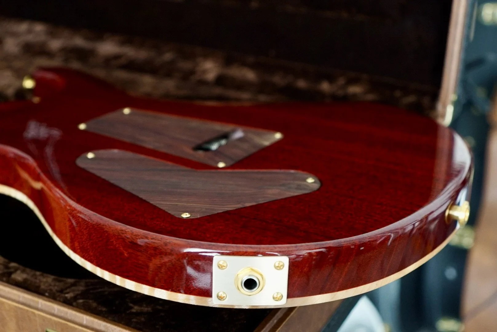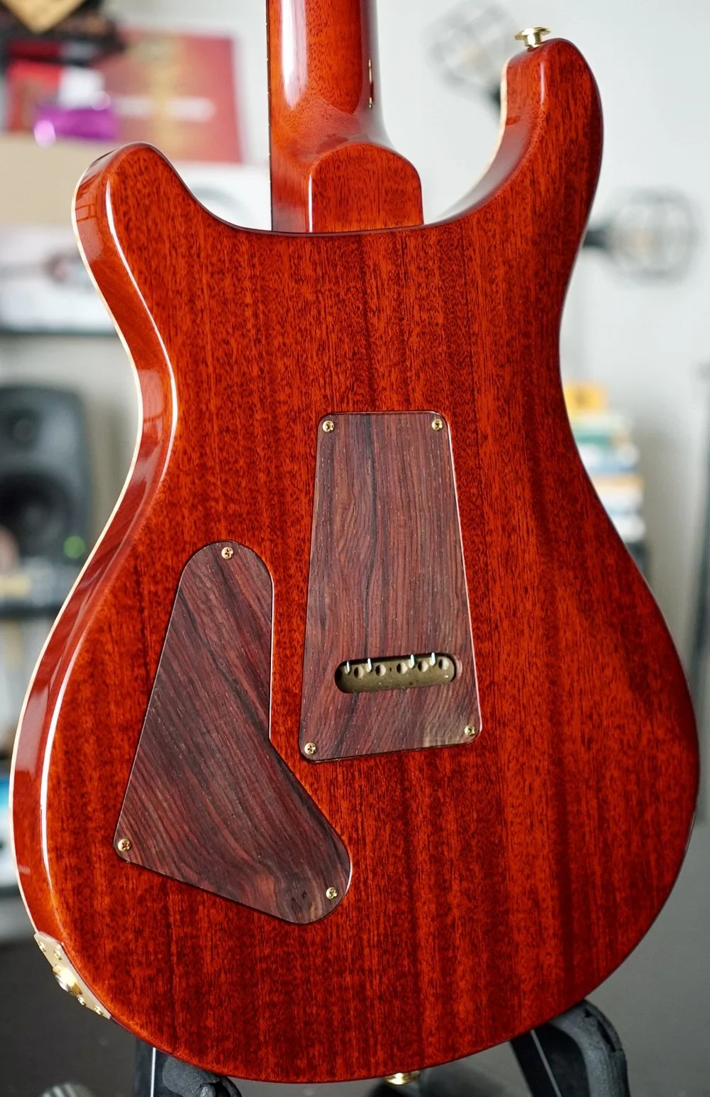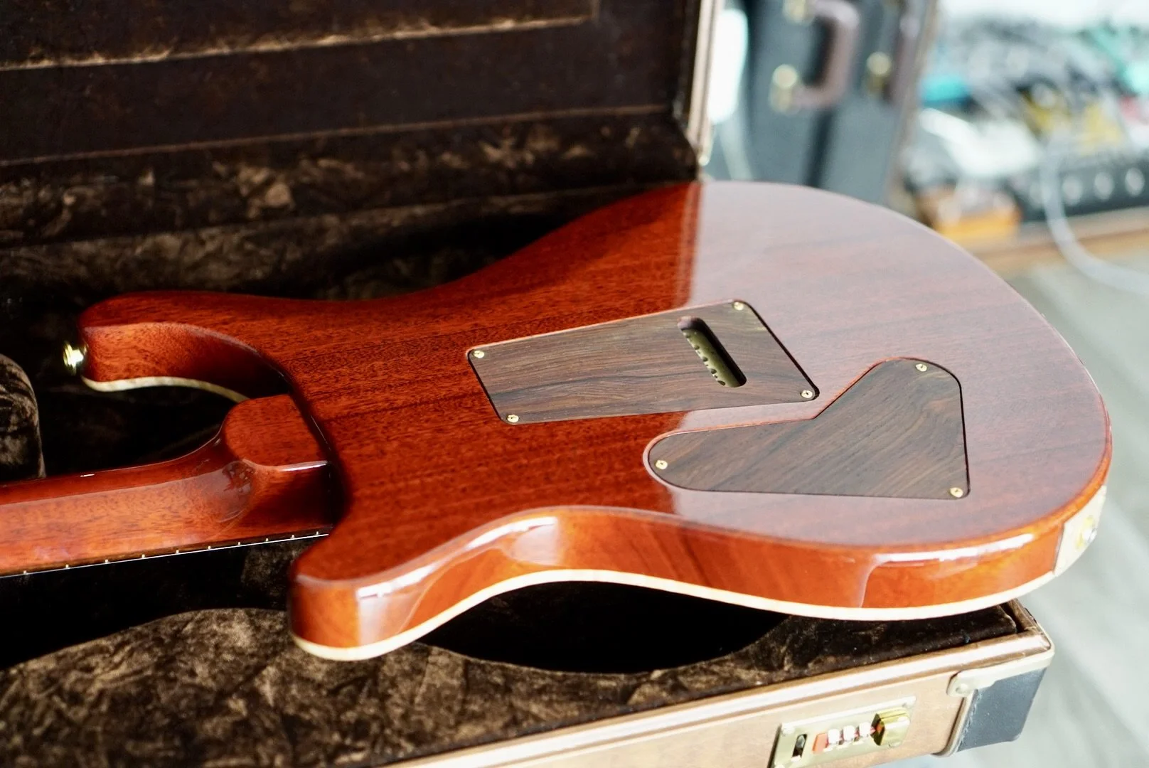 She’s in VERY NEAR MINT CONDITION with very few signs of use. I found some a very small impression on the back and that is all. Cocobolo Backplates and Pickup rings are included with a set of the original Black backplates and Creme Pickup rings.