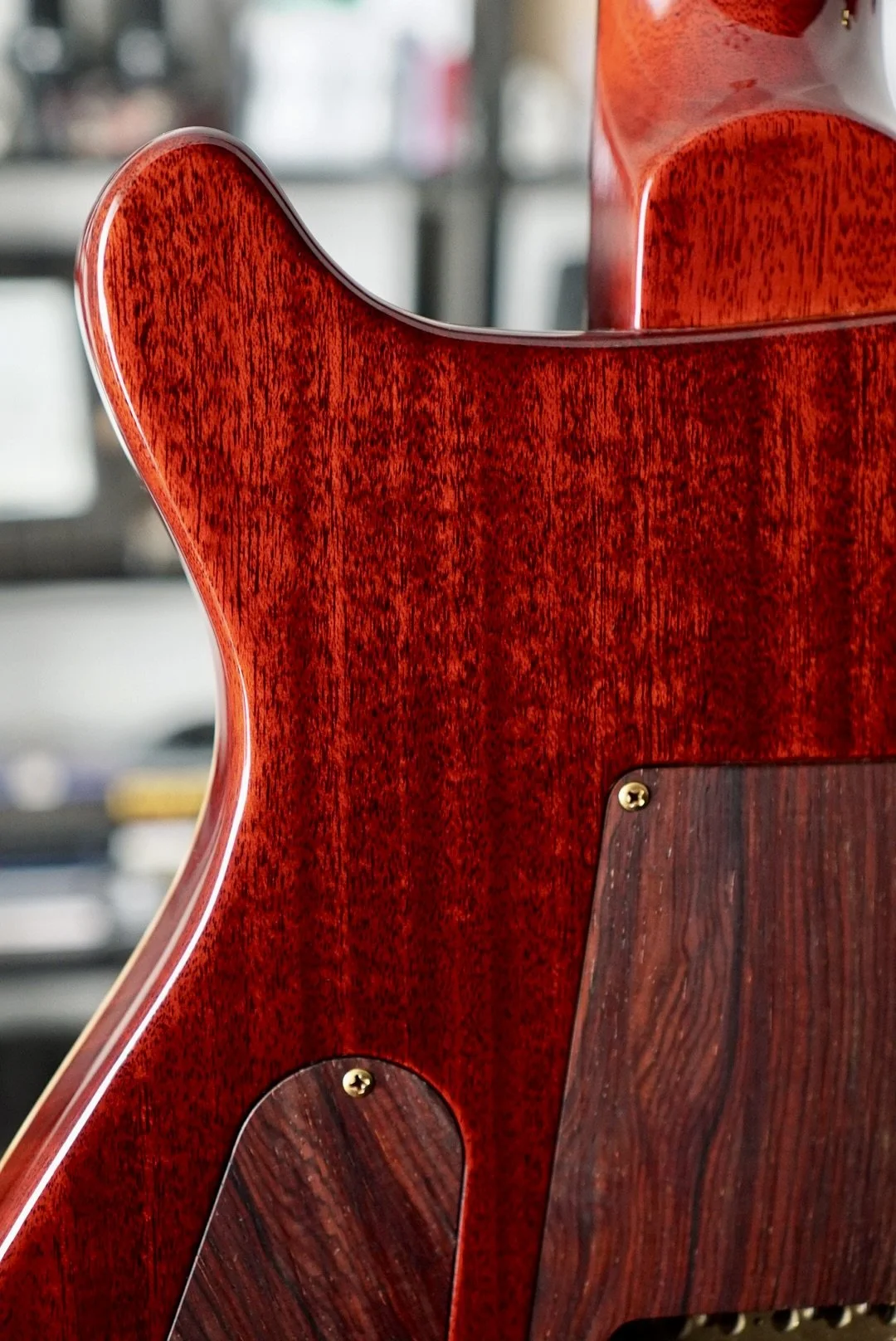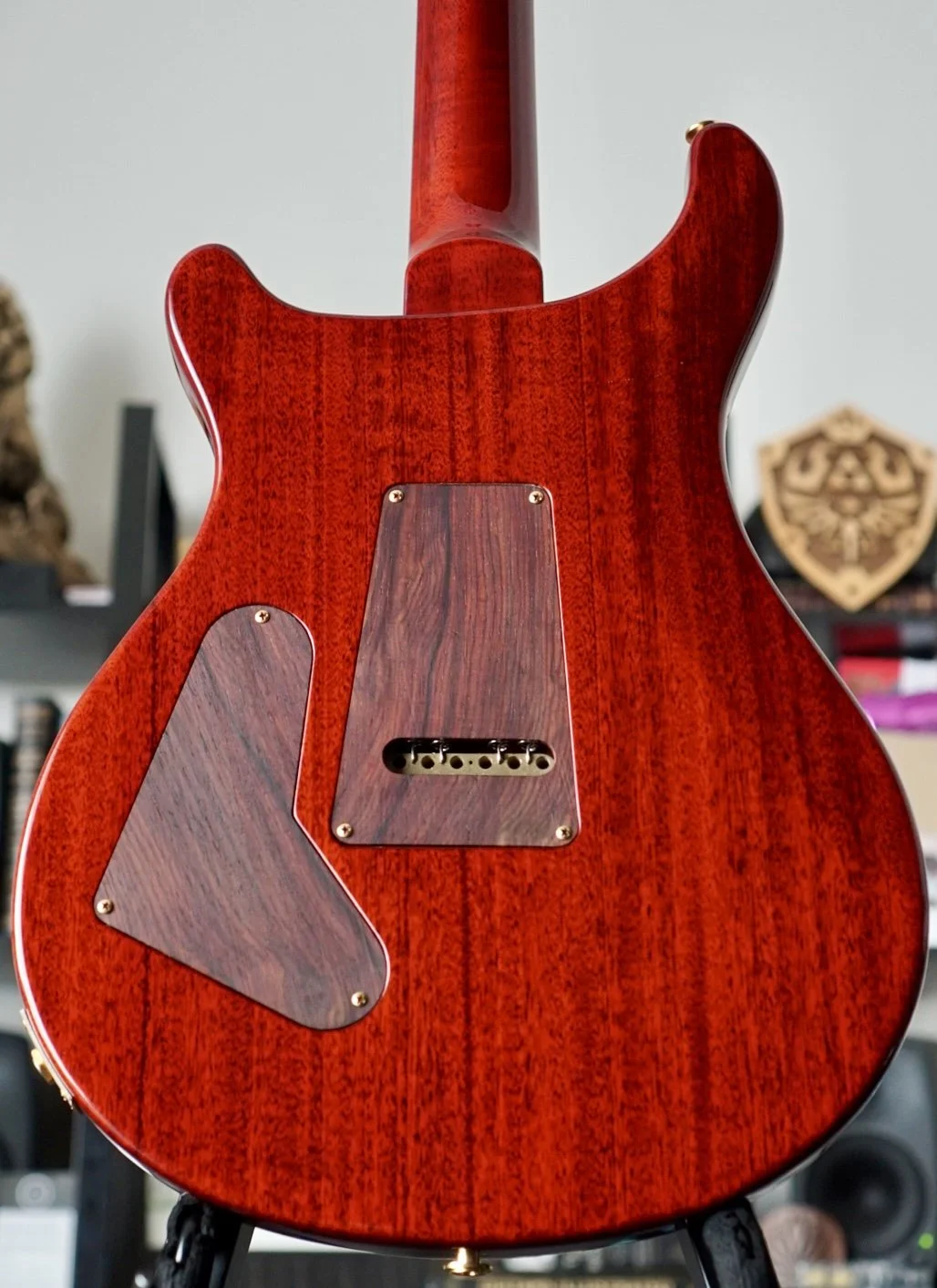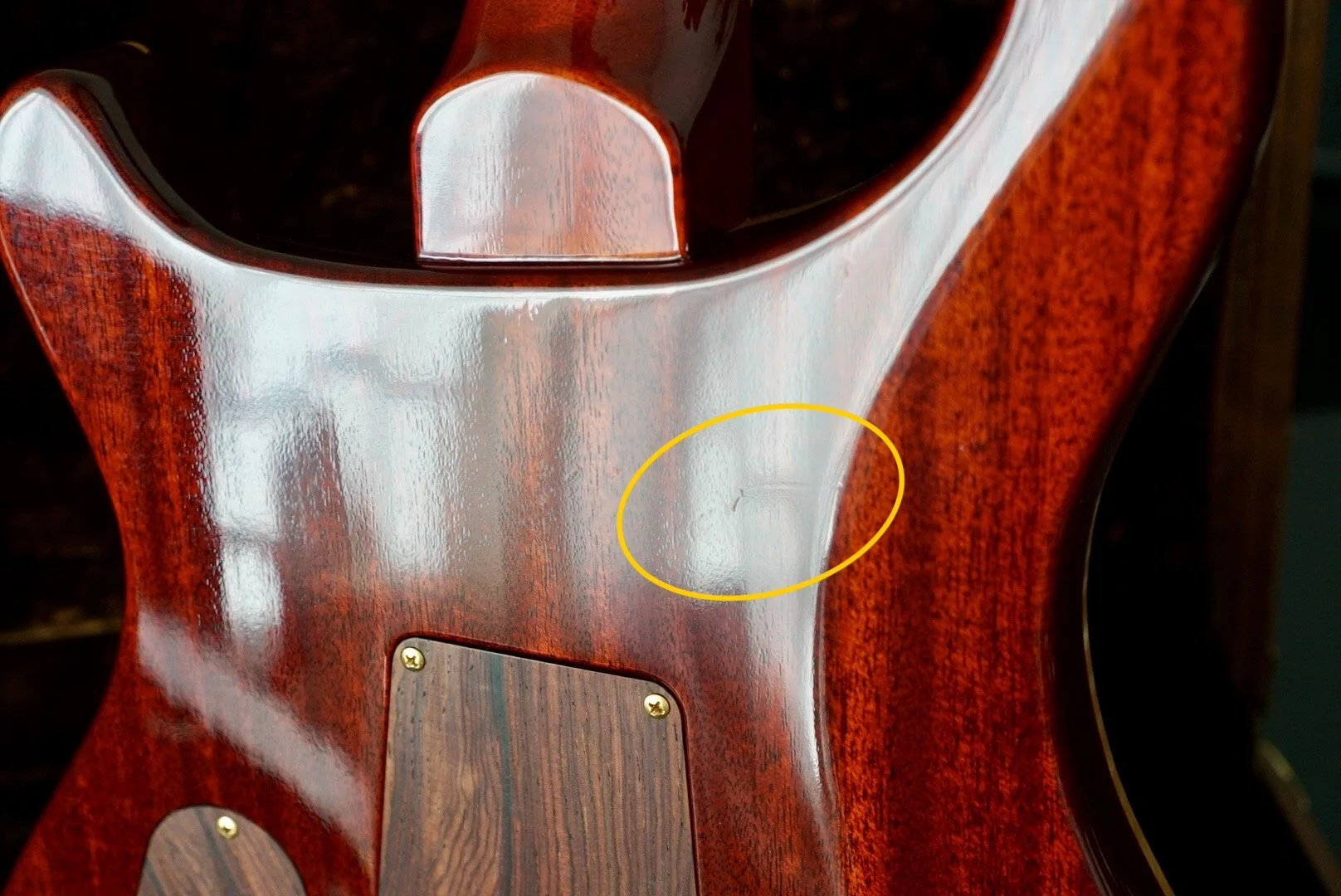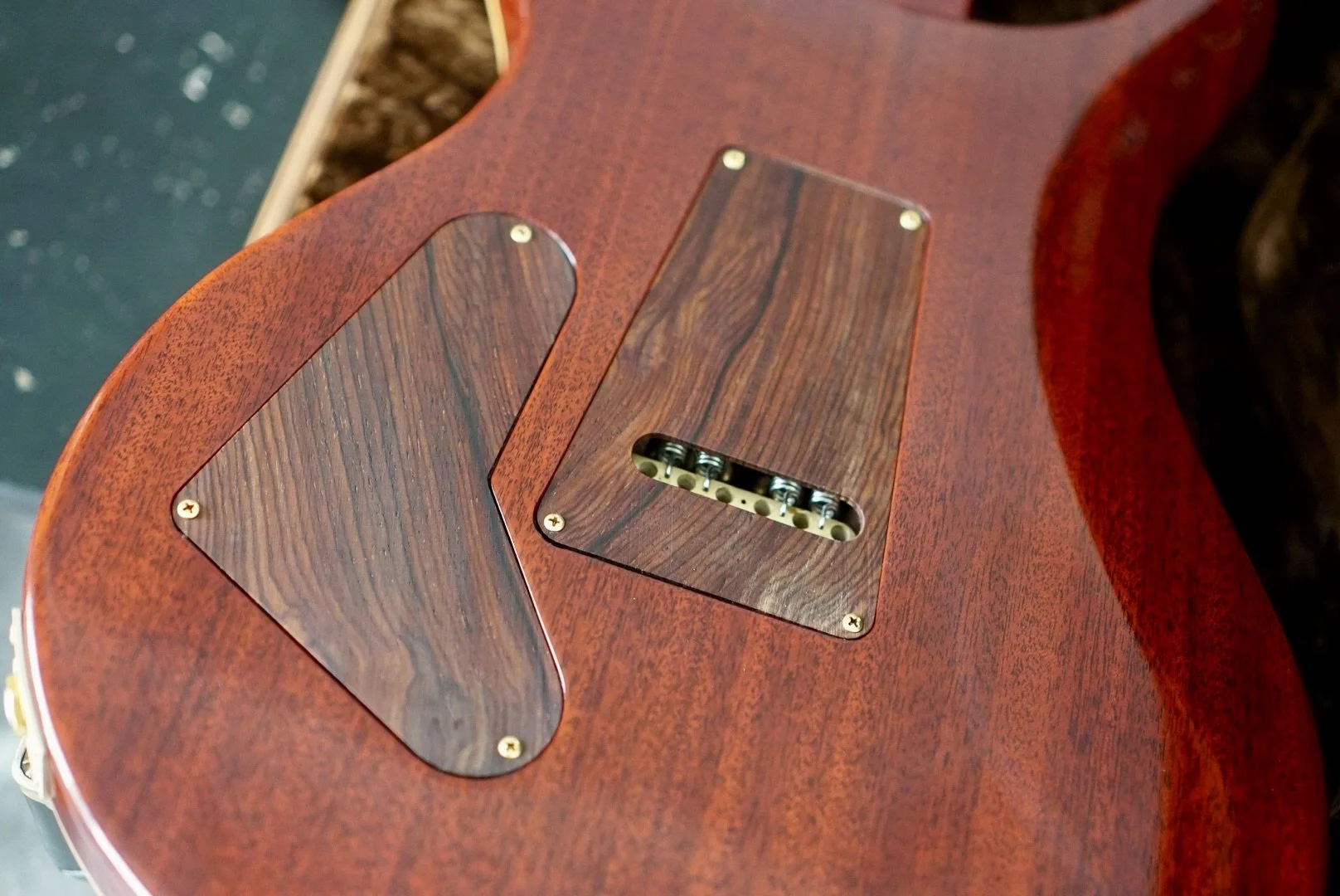 She’s in VERY NEAR MINT CONDITION with very few signs of use. I found some a very small impression on the back and that is all. Cocobolo Backplates and Pickup rings are included with a set of the original Black backplates and Creme Pickup rings.