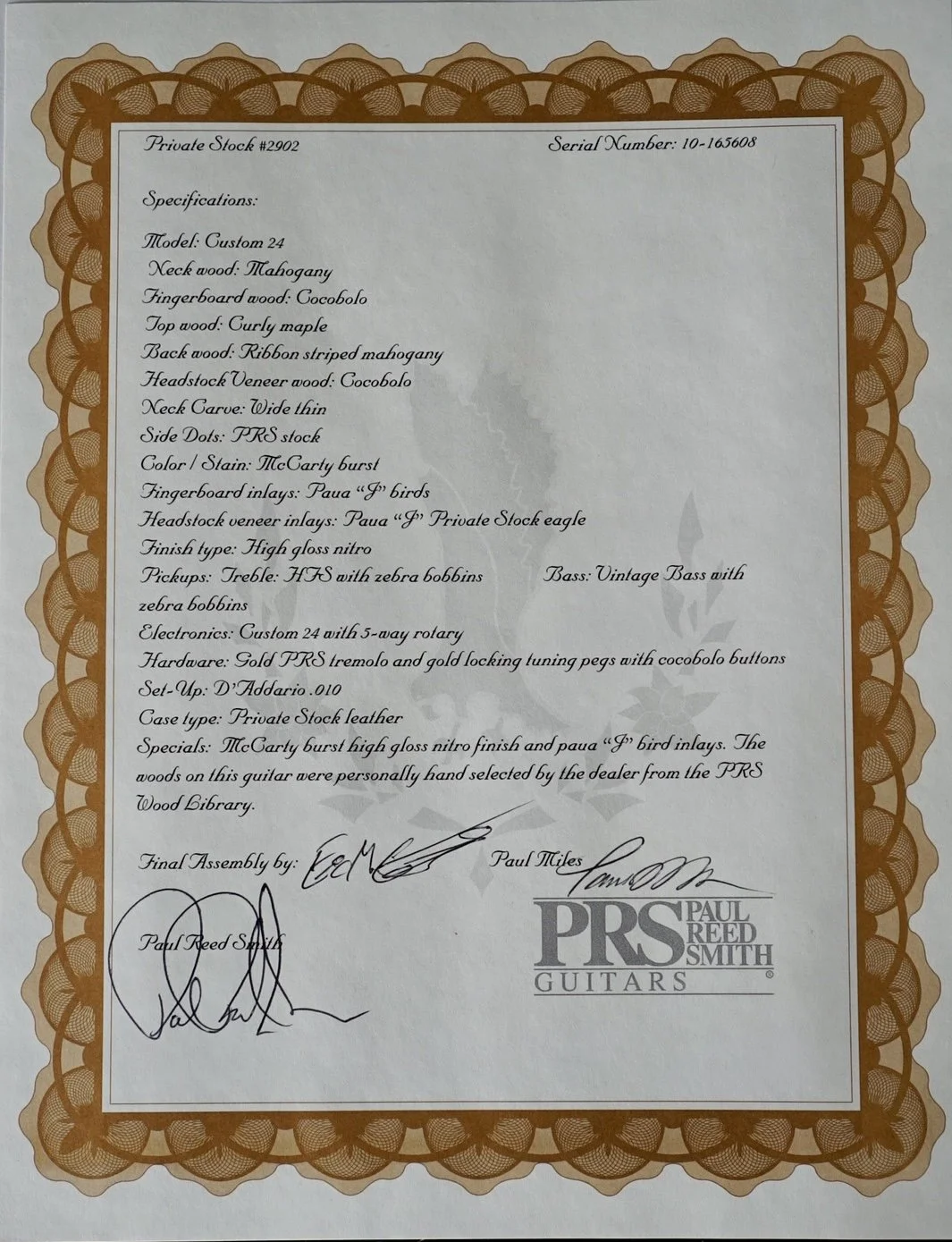 She comes in Original PRS Hard Private Stock Molded Case with all the paperwork!