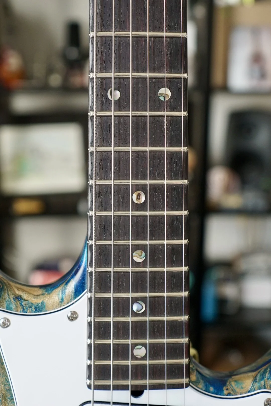 Those Tyler HSH S Style pups are super clean and resonant. JT just makes great stuff. You won’t be disappointed in this axe. The balance with the string resonance is unmatched.