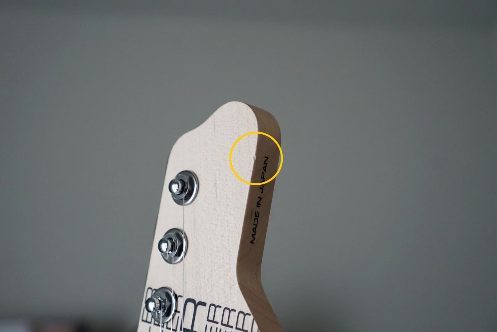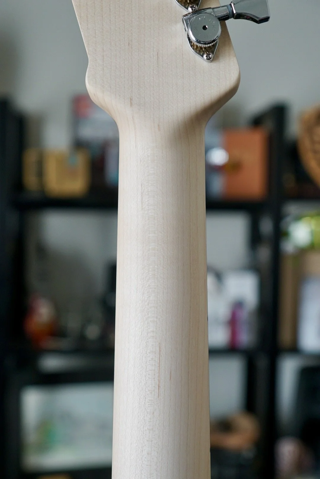 She’s in EXCELLENT CONDITION with one small chip on the headstock and two light impressions that you’d likely never see if I didn’t point them out.