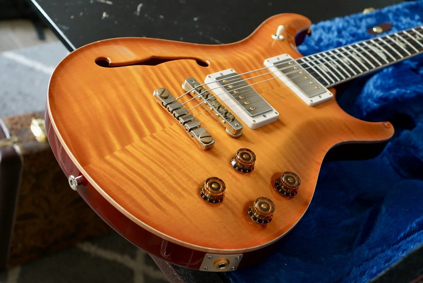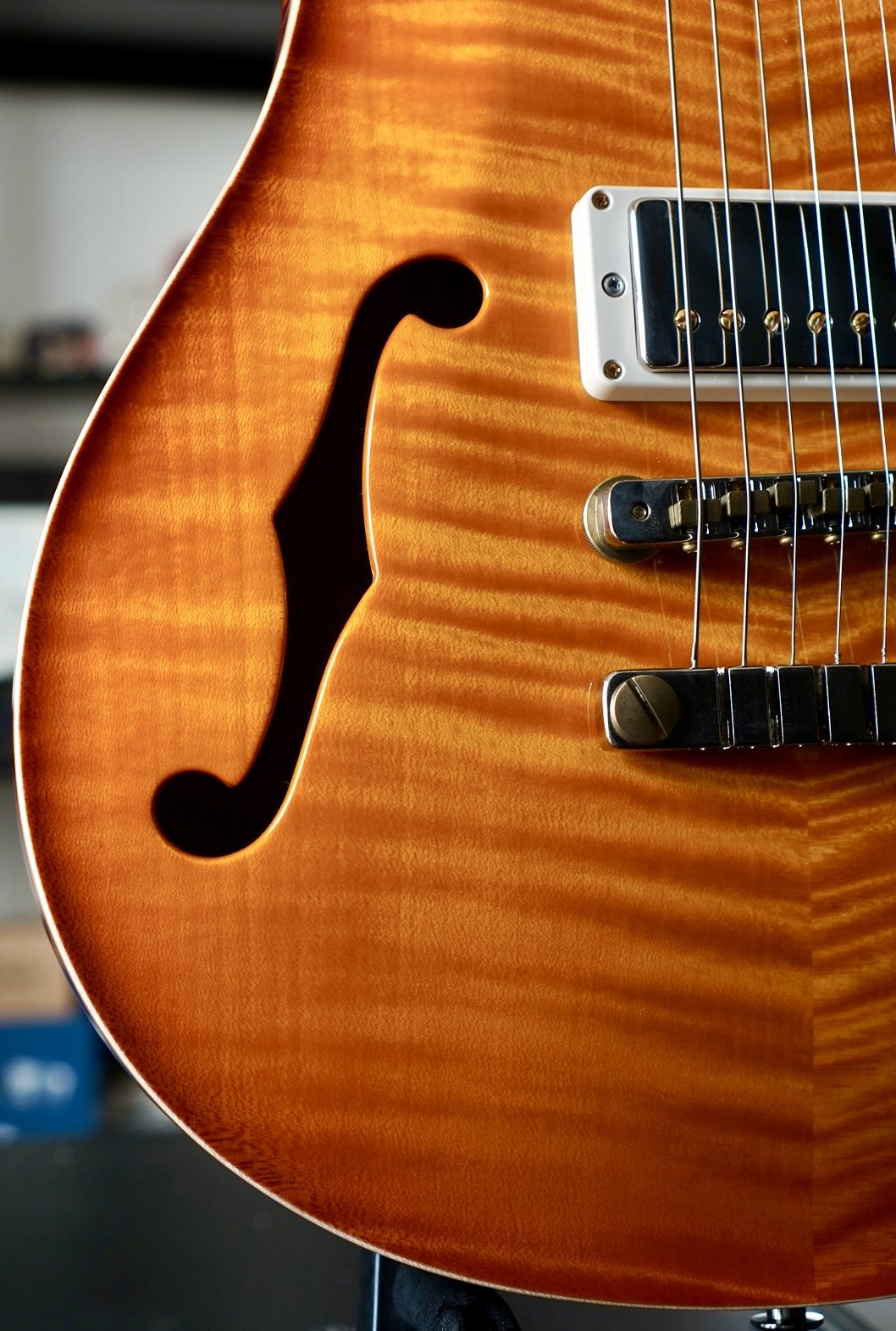 Absolutely breathtaking Chevron Top on a very light Semi-Hollow!